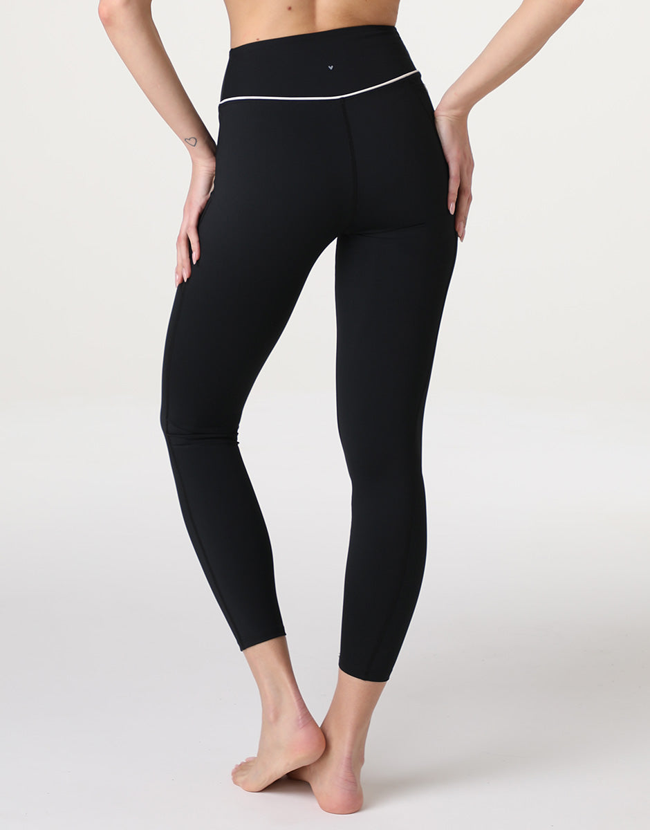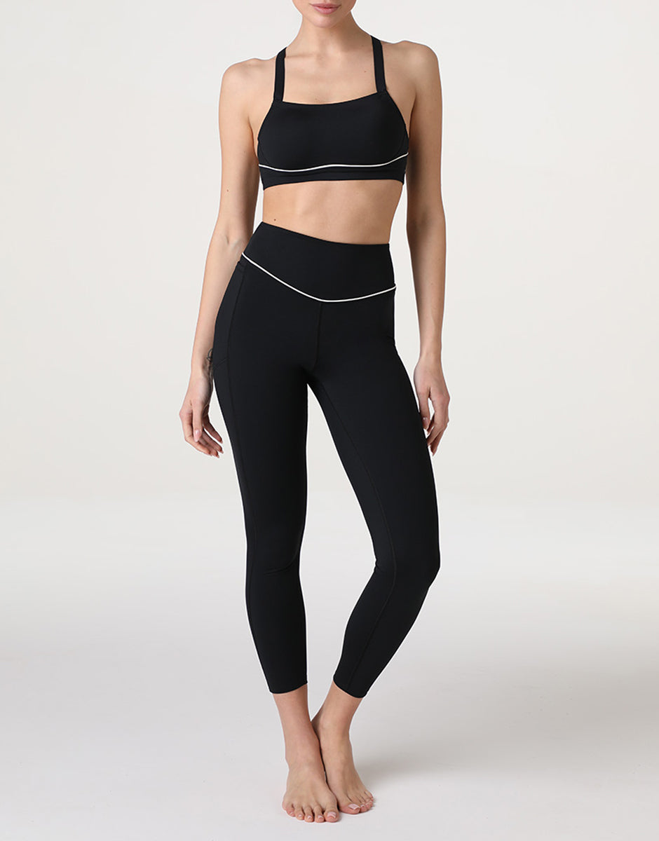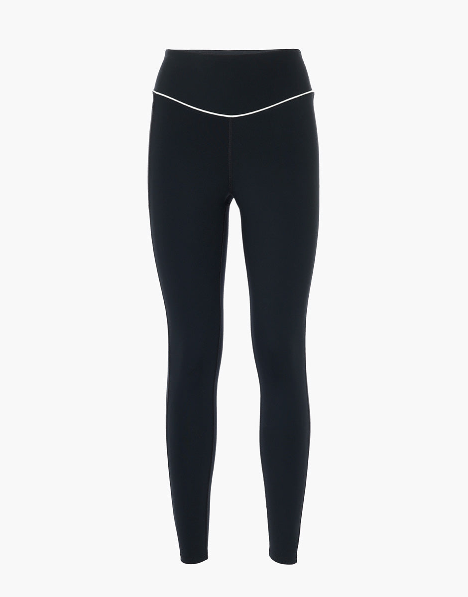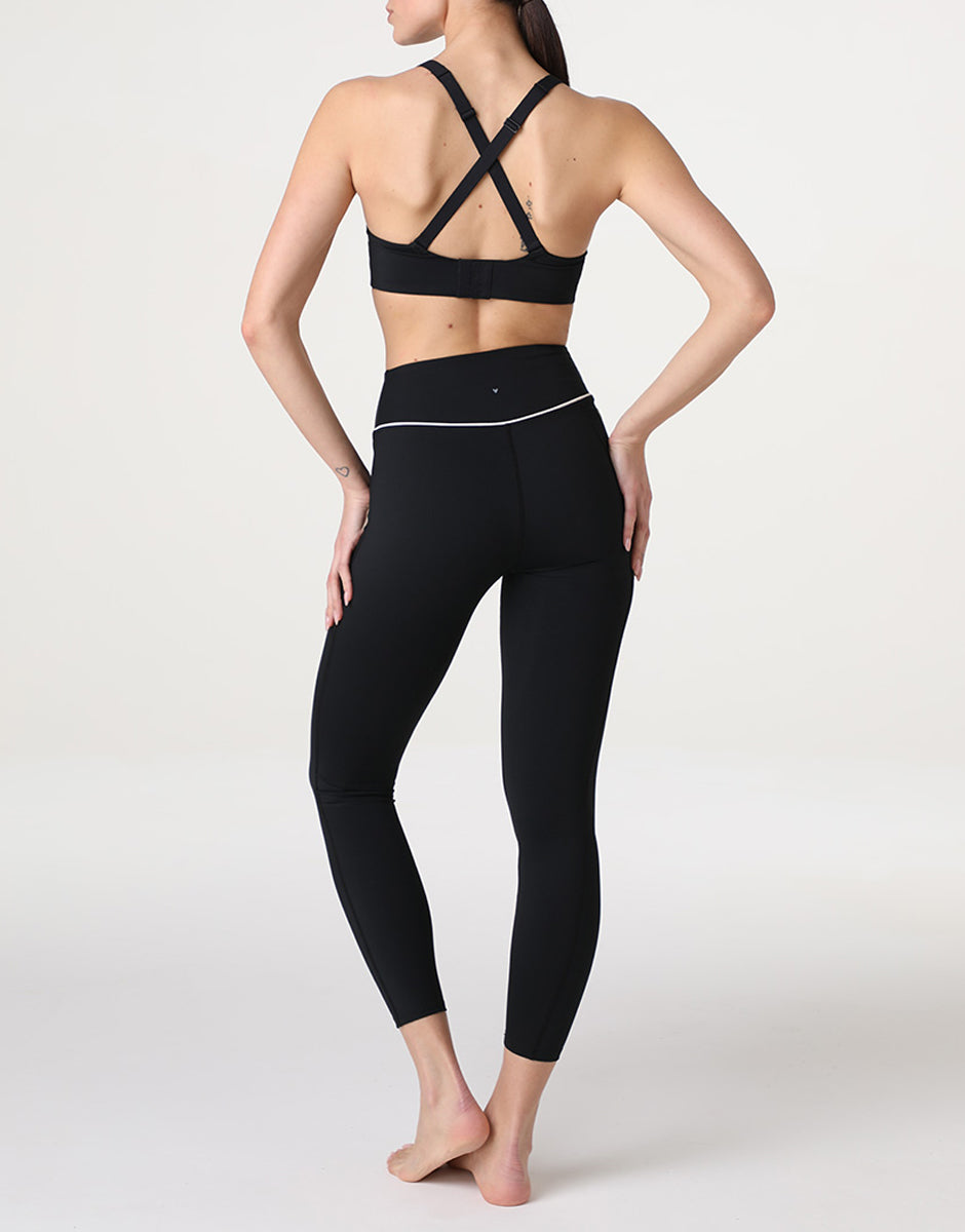 The black sports leggings from the Active Comfort line combine comfort and performance, designed to accompany you during workouts, fitness activities, or outdoor sports. Made of stretchy, shaping microfiber, the fabric sculpts and defines the silhouette without restricting movement. The high waist and comfortable fabric maintain shape without constricting, while the side pocket offers practicality. The contrasting white piping on the waist adds a feminine and refined touch. Perfect for fitness sessions, the gym, or outdoor sports, these leggings offer support, comfort, and style in a functional and high-performance garment.Discover the entire Active Comfort line and complete your sports wardrobe with high-performance, feminine leggings.The model is 175 cm tall and wears size S. High-waisted leggings Stretch and shaping microfiber Side pocket Contrasting white pipingSide pocket