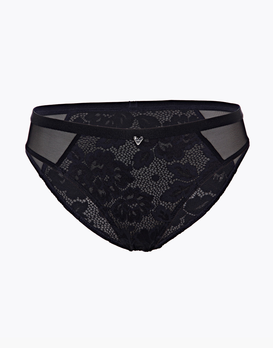 RECOMMENDED BECAUSE: Briefs with a double floral lace front and back panel and tulle sides for a refined and sophisticated look, thanks to the interplay of transparencies created by the combination of these two precious materials. The model is completed by a shiny elastic waistband and a detail in the center with rhinestones and a visible Lovable heart. Perfect for all Comfort Lovers.Double-layered briefs at the front and back. Tulle sides. Mid-rise waist and classic fit. Composition: 91% polyamide (PA) - 9% Elastane (EA)