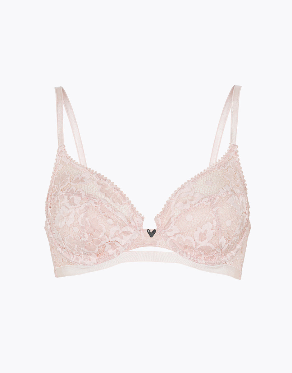 Anniversary Lace underwired bra in recycled lace and tulle, powder pink