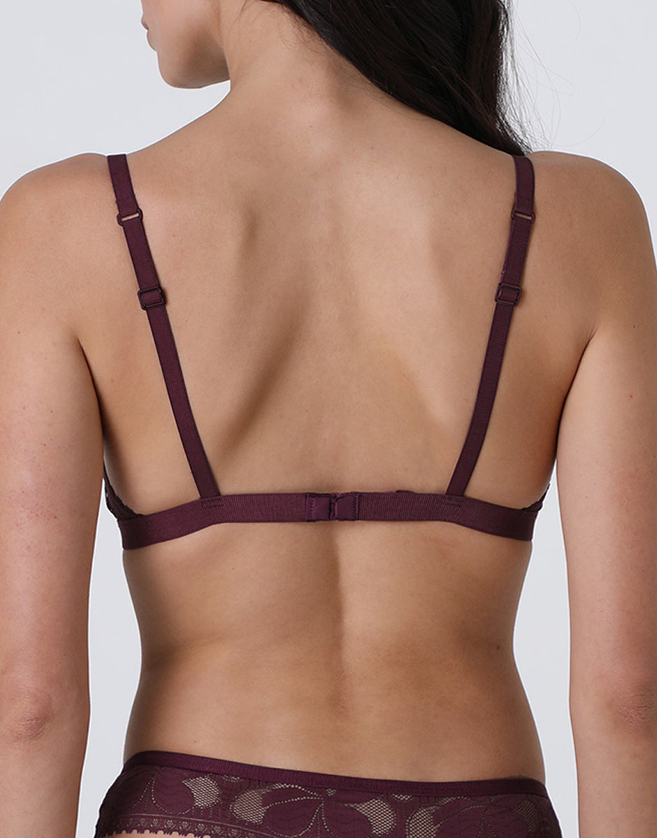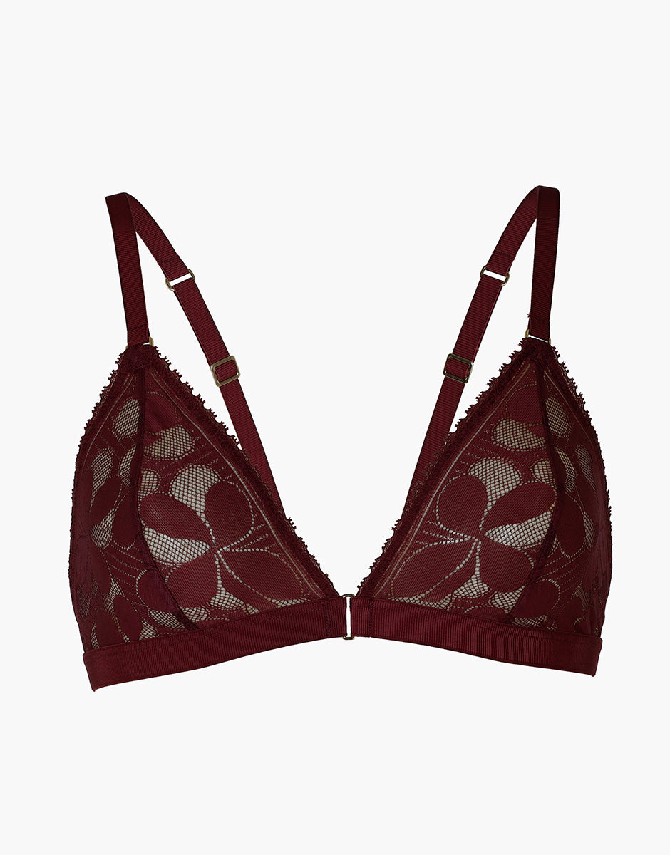 Art Flower Lace Triangle Bra without Underwire, burgundy
