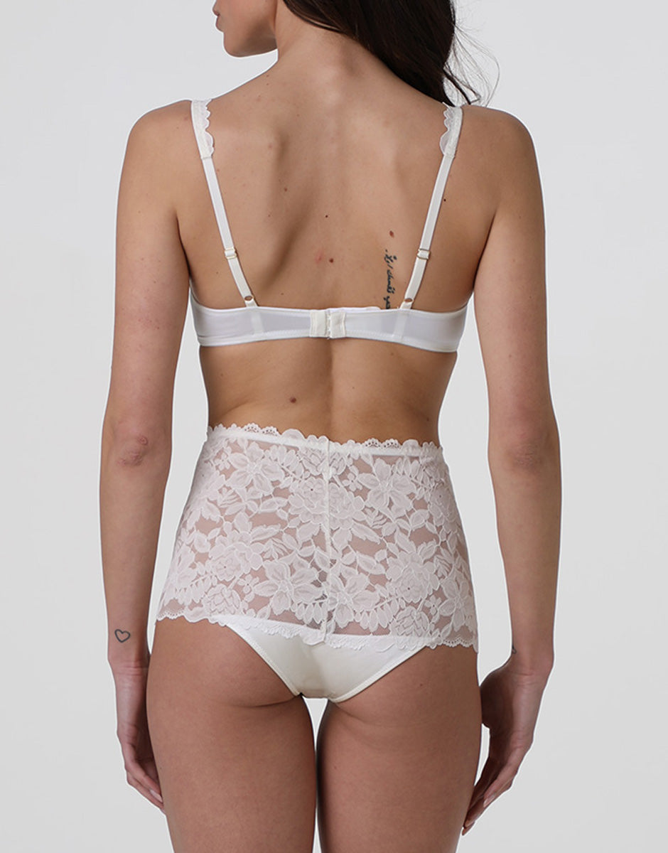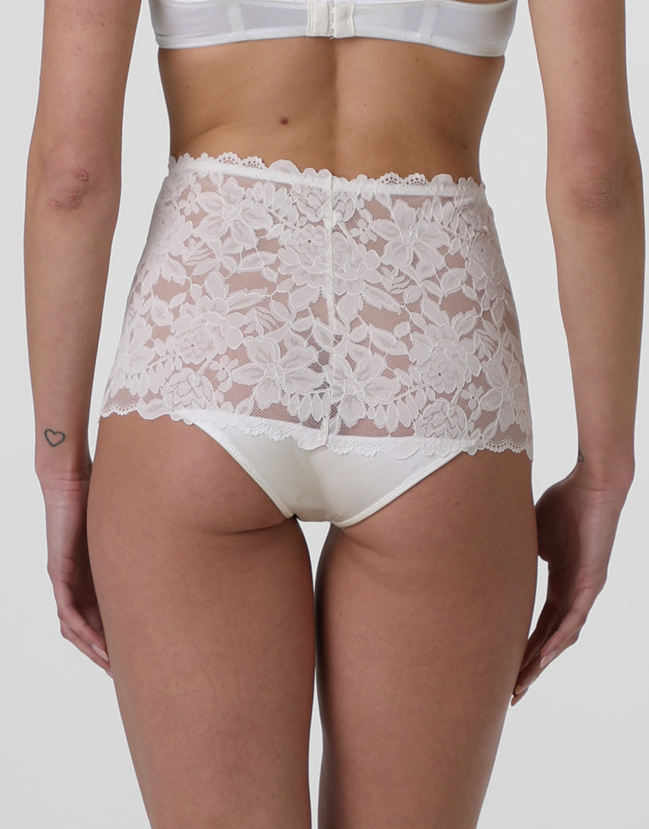 Beautiful Lace high-waisted briefs in lace and satin microfiber, milk white