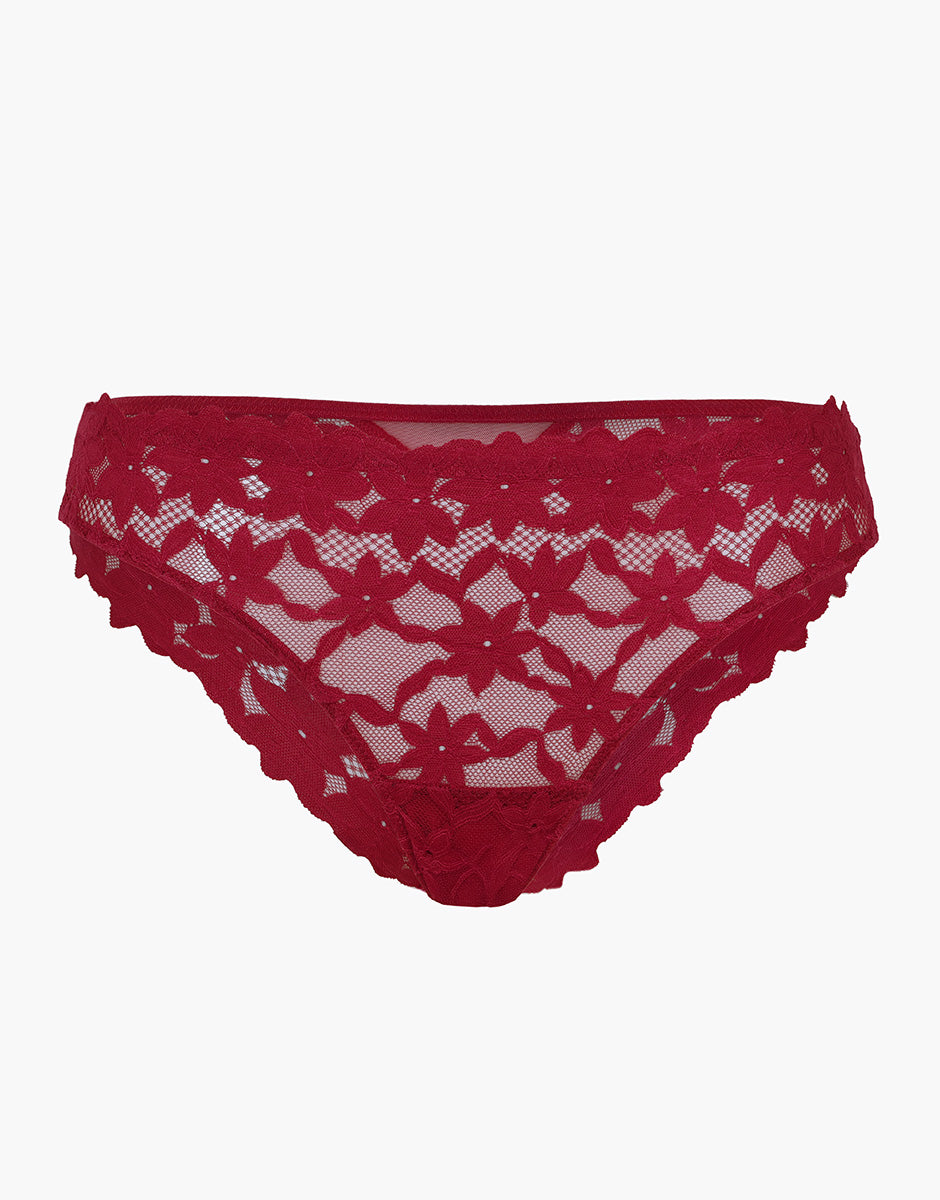 Discover the Brazilian briefs from the Ribbon Lace collection, made from refined red lace.
