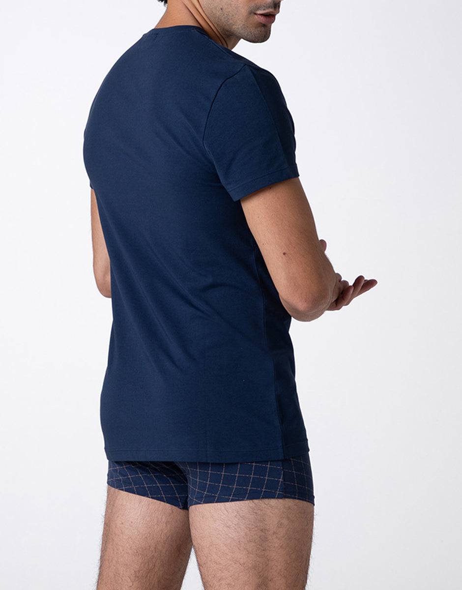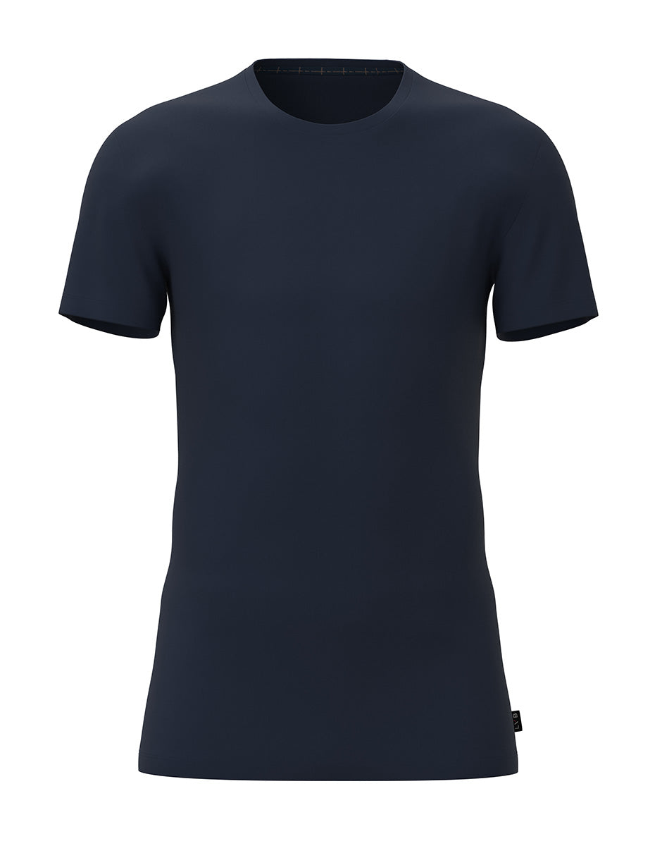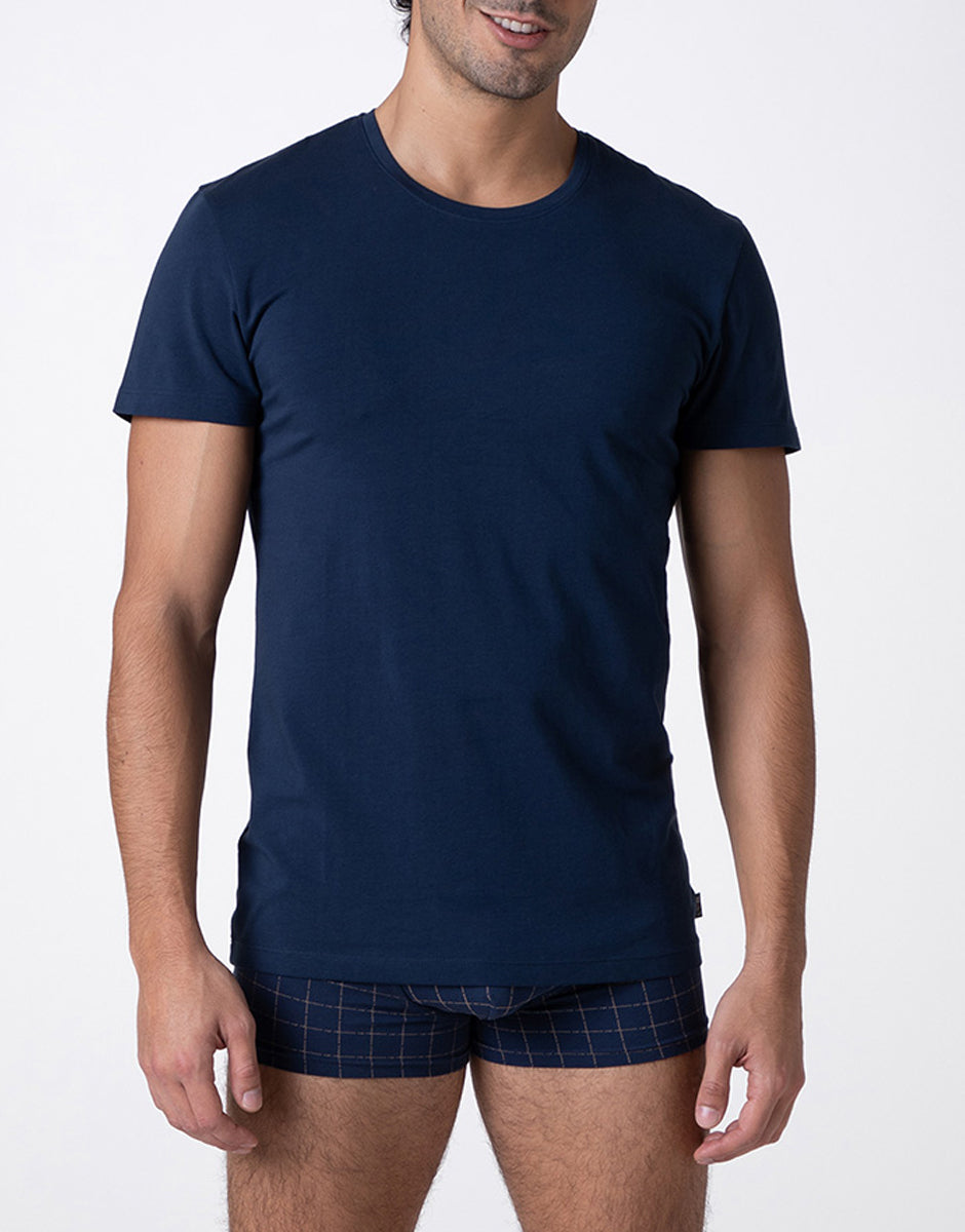 Casual Stretch Cotton Crew Neck T-Shirt, navy blue
