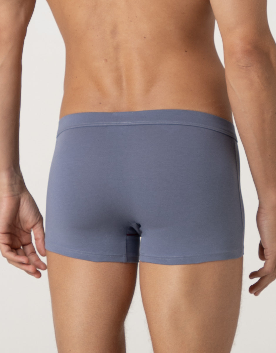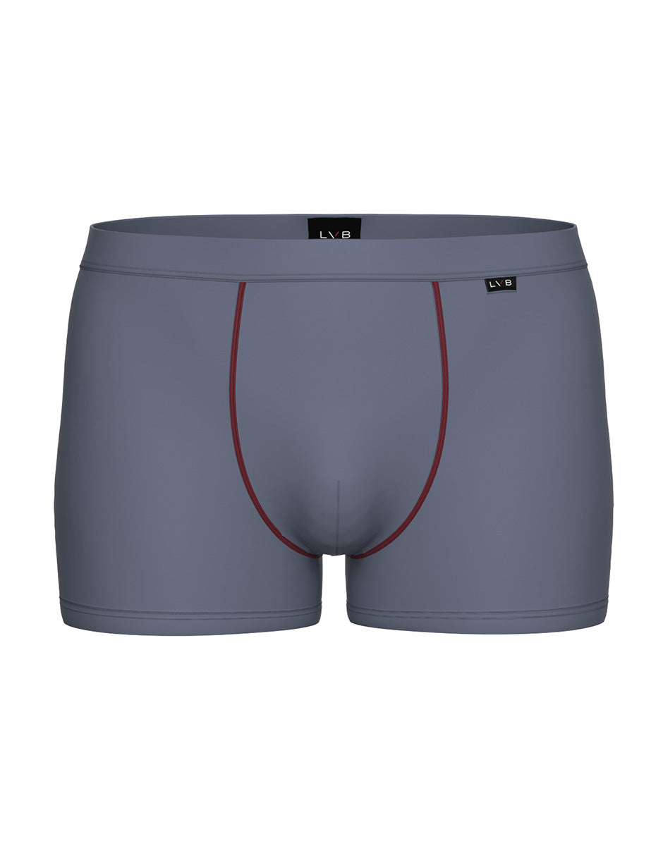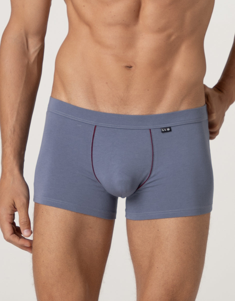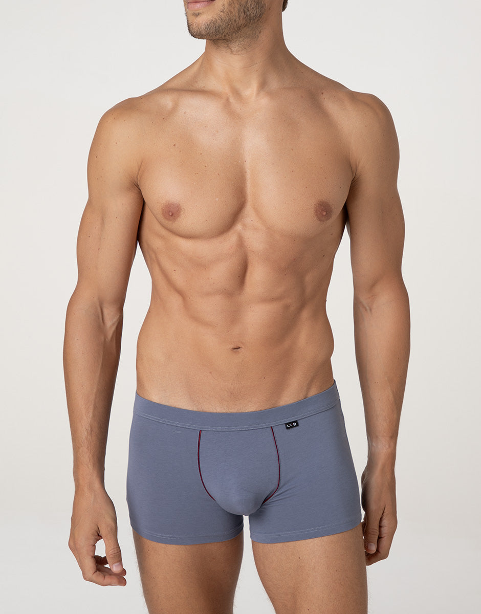 The Classic Cotton Modal Boxer Shorts in light blue gray combine comfort and style in a garment designed for everyday wear. The stretch cotton and modal fabric guarantees softness and breathability, following the body's movements naturally. The light blue gray color adds a modern and versatile touch, while the contrasting burgundy piping finishes the design with elegance and personality. The covered elastic ensures a stable and comfortable fit, for practical underwear with attention to detail. Choose the Classic Cotton Modal Boxer in light gray with burgundy piping for a refined and original look for any occasion.lt;em>The model is 188 cm tall and wears size M. Boxer shorts with covered elastic band. Contrasting color piping. Soft and breathable fabric.Soft, breathable fabric
