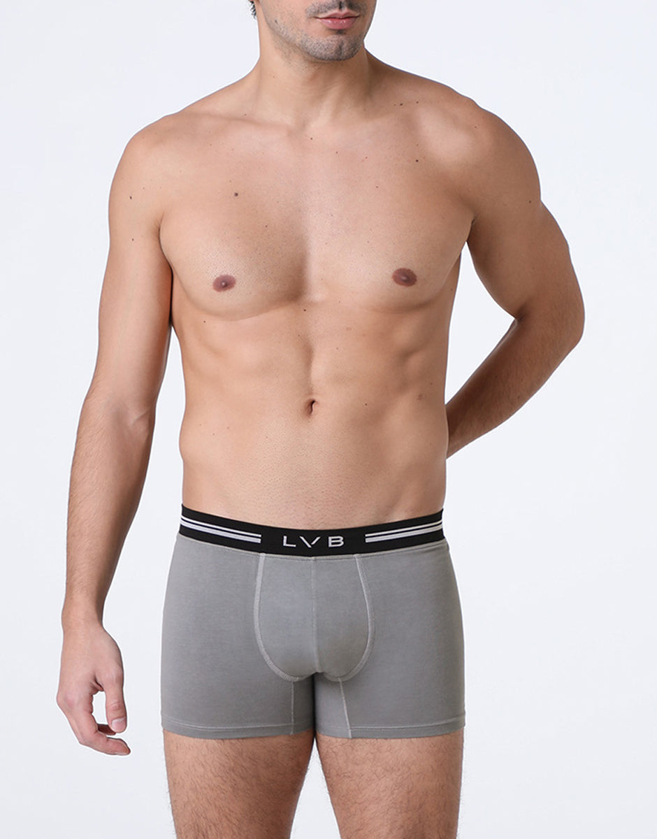 The Comfort 360 Stretch Cotton boxer shorts in deep gray are perfect for those who want underwear with a bold and refined character. The stretch cotton fabric gently follows the contours of the body, while the deep gray color adds a modern and sophisticated touch. The elastic waistband with differentiated compression zones ensures an ergonomic fit, without marks and with maximum comfort for every movement.Choose the Comfort 360 Stretch Cotton boxer shorts for underwear that combines innovation, comfort, and a perfect fit every day.The model is 180 cm tall and wears size M.Stretch cotton boxer shorts Elastic waistband with differentiated compression zones Close fit without leaving marks on the skin Casual, modern designBlack elastic band with LVB logo