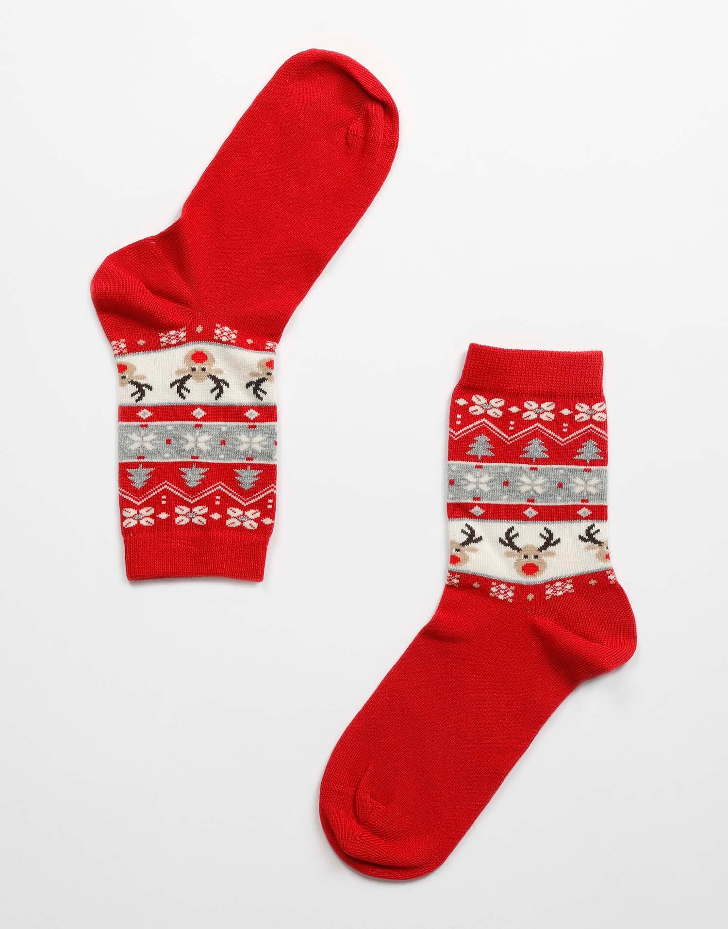 Red socks with Christmas pattern, comfortable and durable. The perfect detail for a special Christmas.