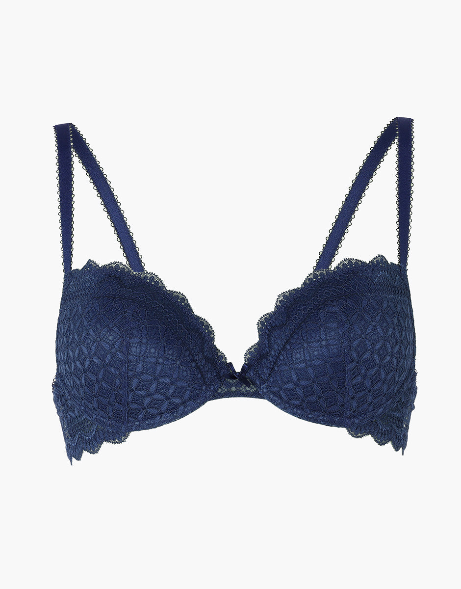 Graphic Lace Padded Underwired Bra in teal
