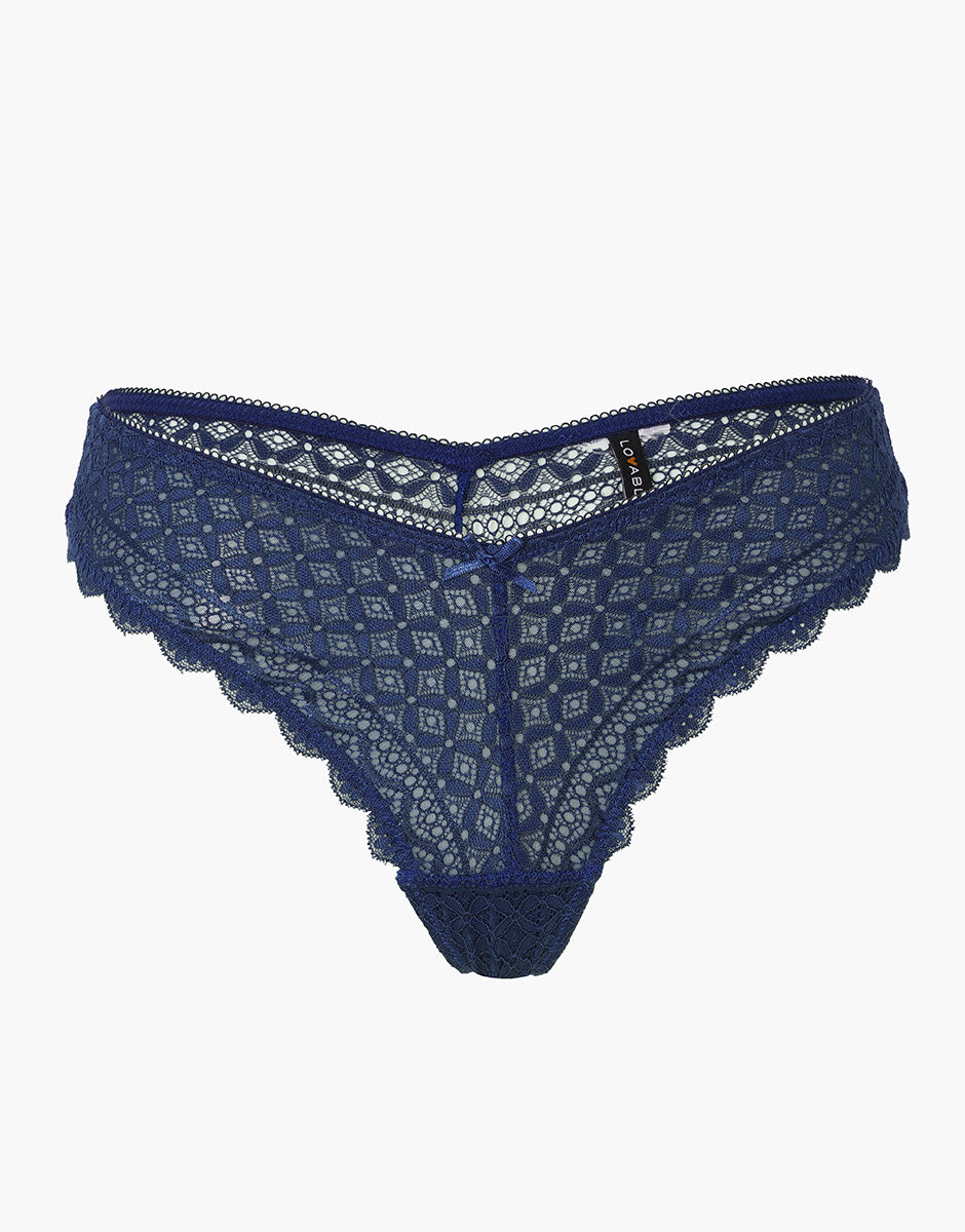The model is 175 cm tall and wears size S. Lace thong with center seam. Picot lace trim facing down. Picot trim at the waist.Scalloped lace trim facing down PLEASE NOTE: We recommend consulting the Size Guide on the product page to ensure you purchase the correct size for you.
