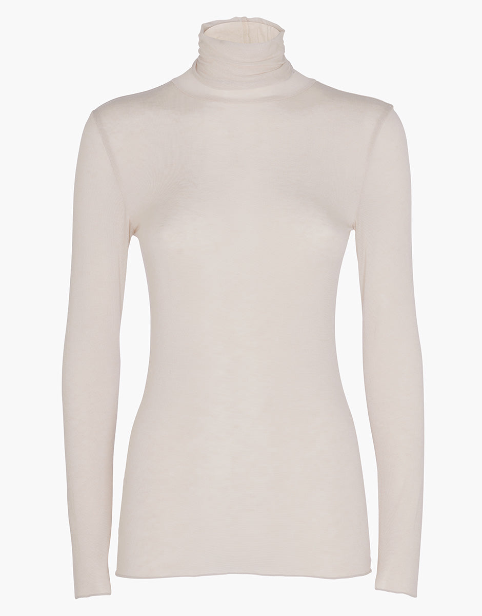High-neck, long-sleeved sweater in modal and cashmere, sand