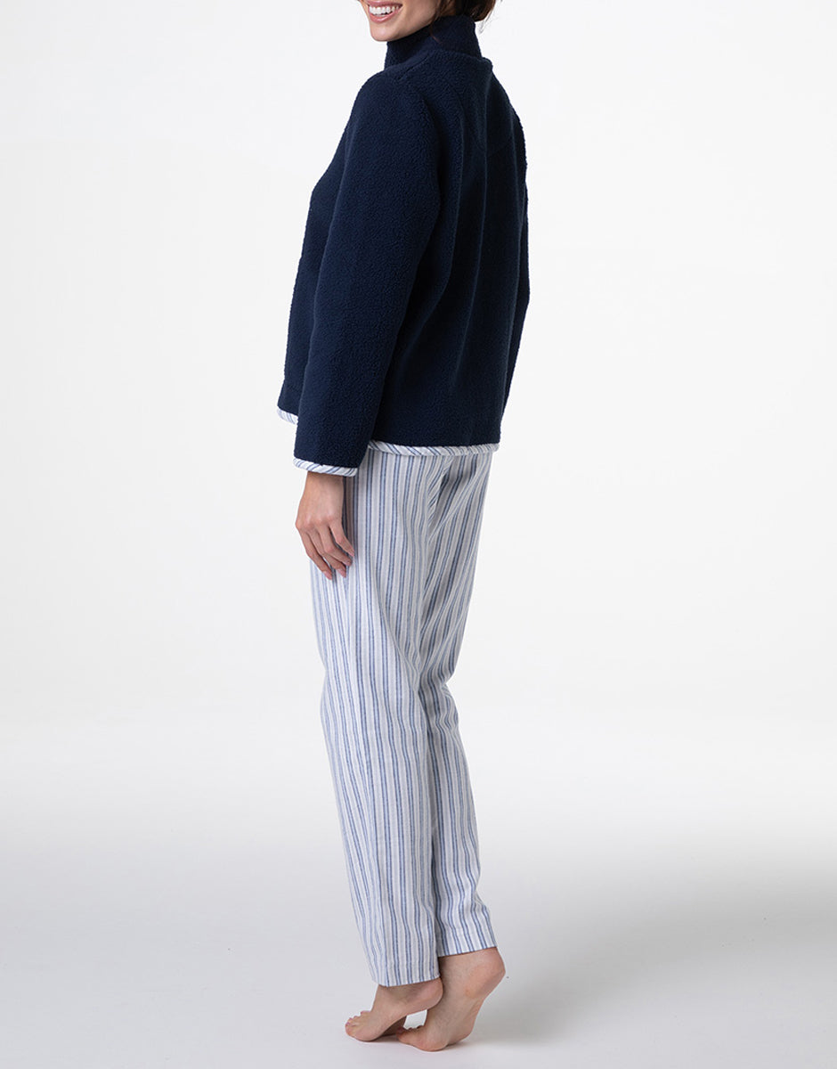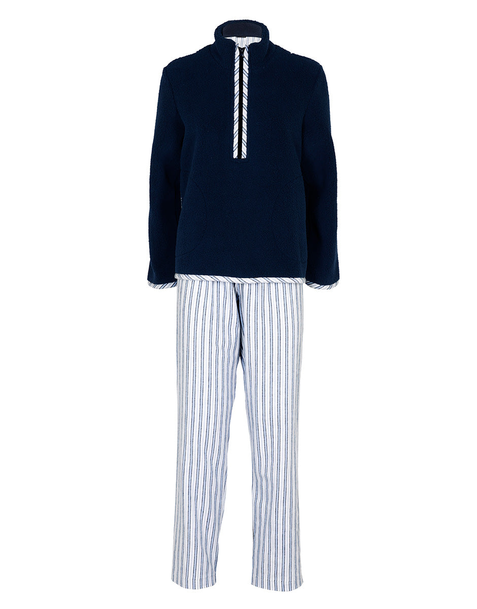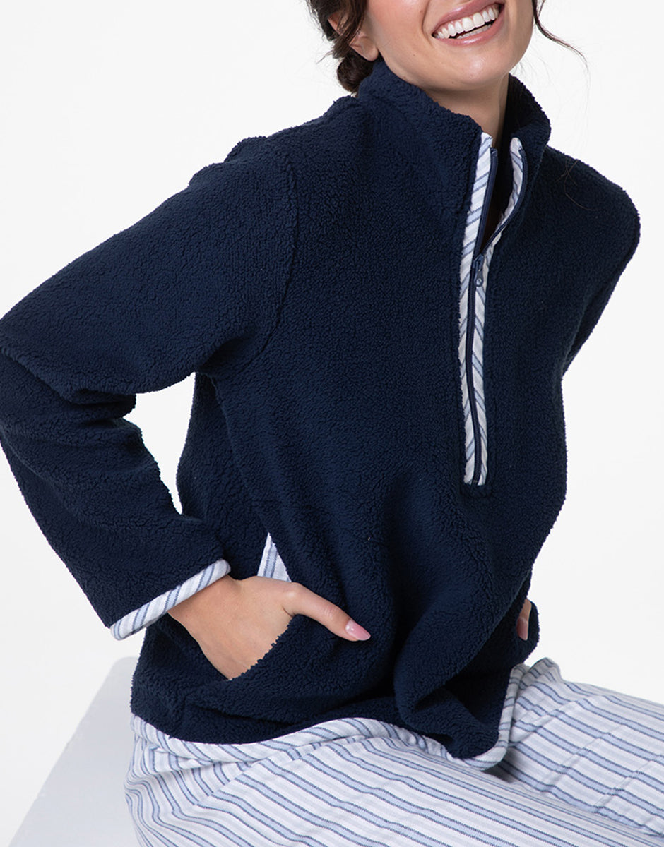Homewear Closed with half zip in flannel and faux fur, midnight blue