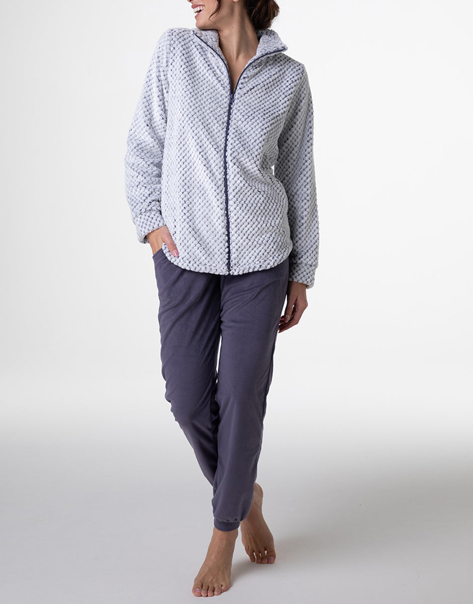 Homewear Open in Jacquard Fleece and Microfleece, Gray