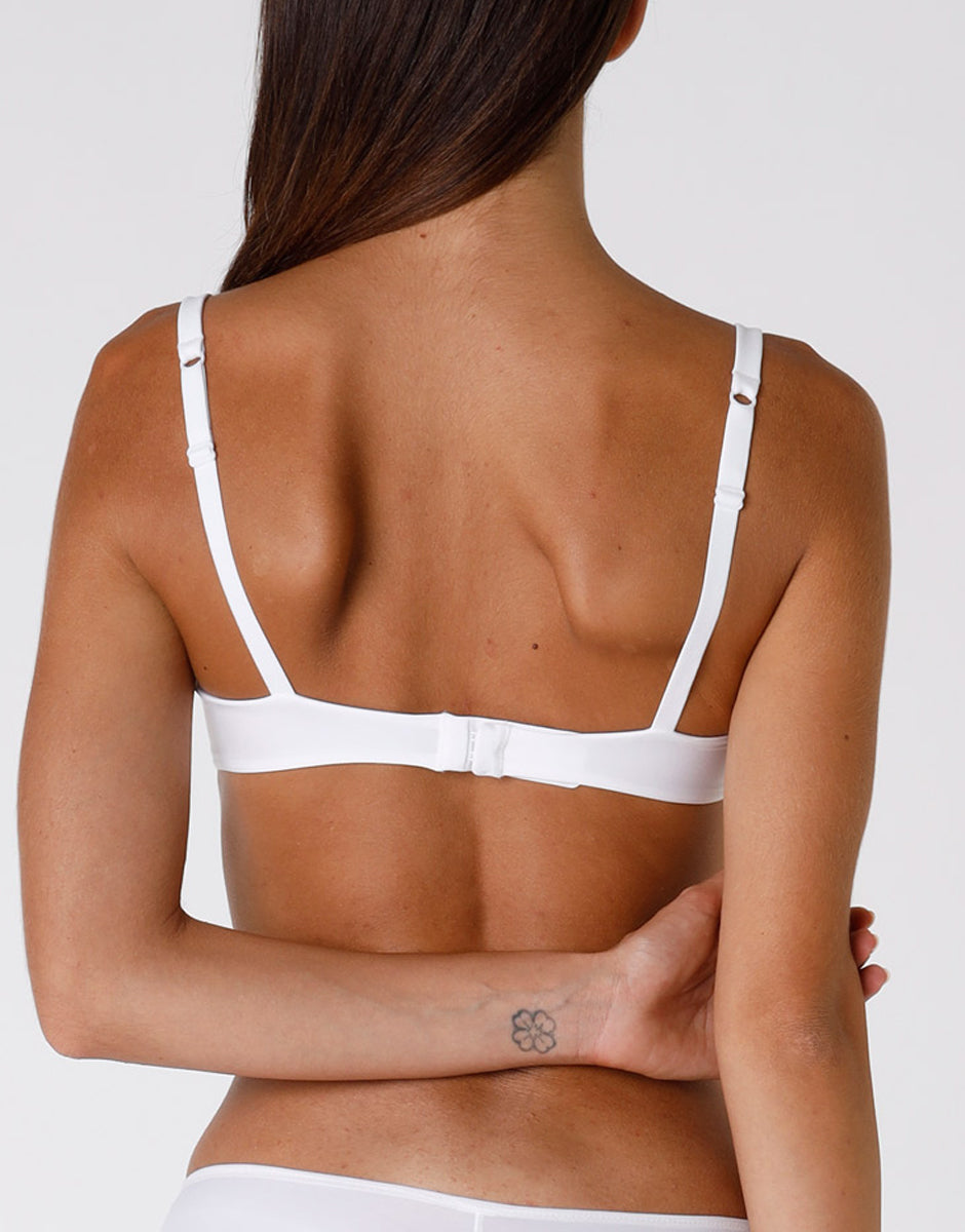 Clean lines, no visible seams, cups that continue onto the straps, essential style, 100% designed in Italy.