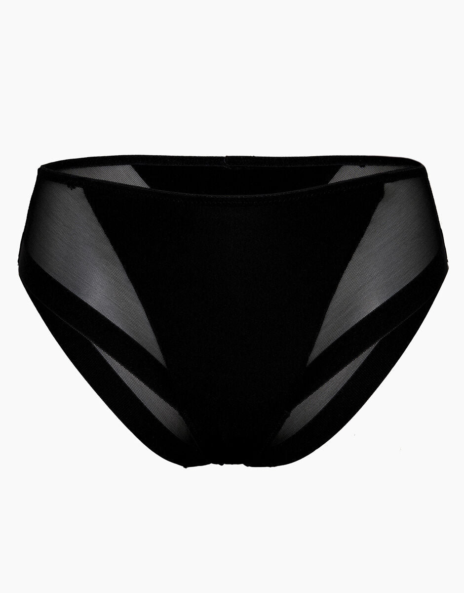 Invisible Ultralight black microfiber and tulle high-cut midi briefs. Maximum invisibility