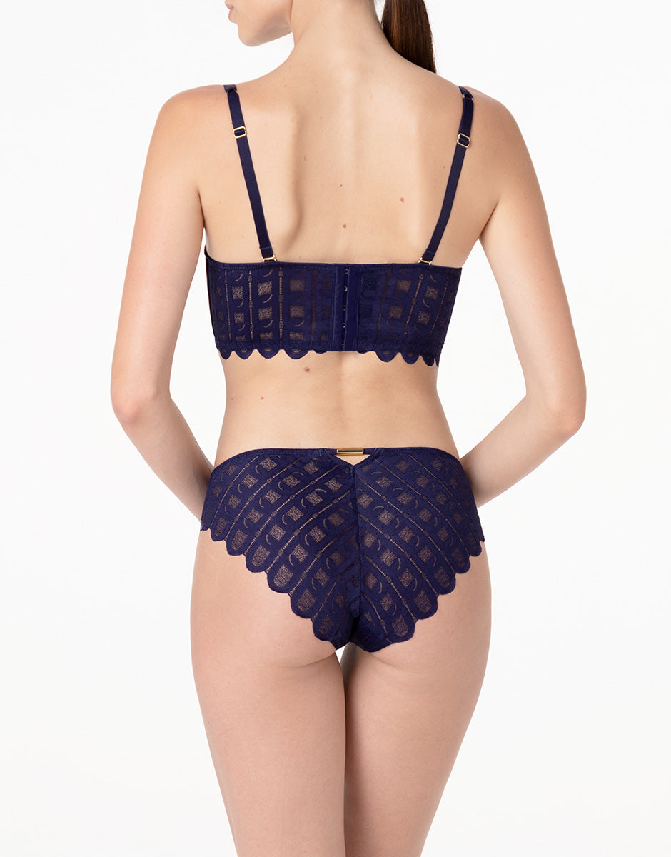 The dark purple color intensifies the character of the lace and adds depth to the design, making this bra ideal for a bold, feminine, and contemporary intimacy.