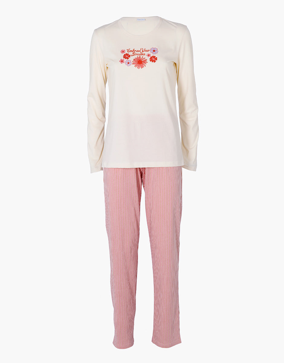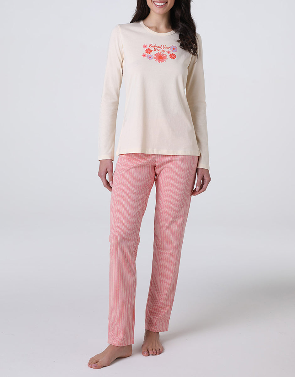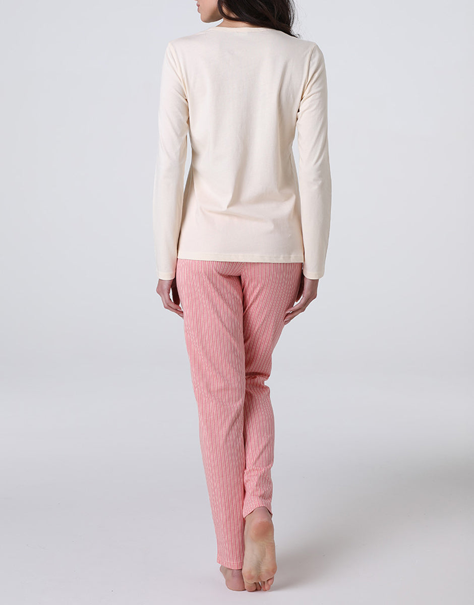 Long Jersey Pajamas, Ivory Print