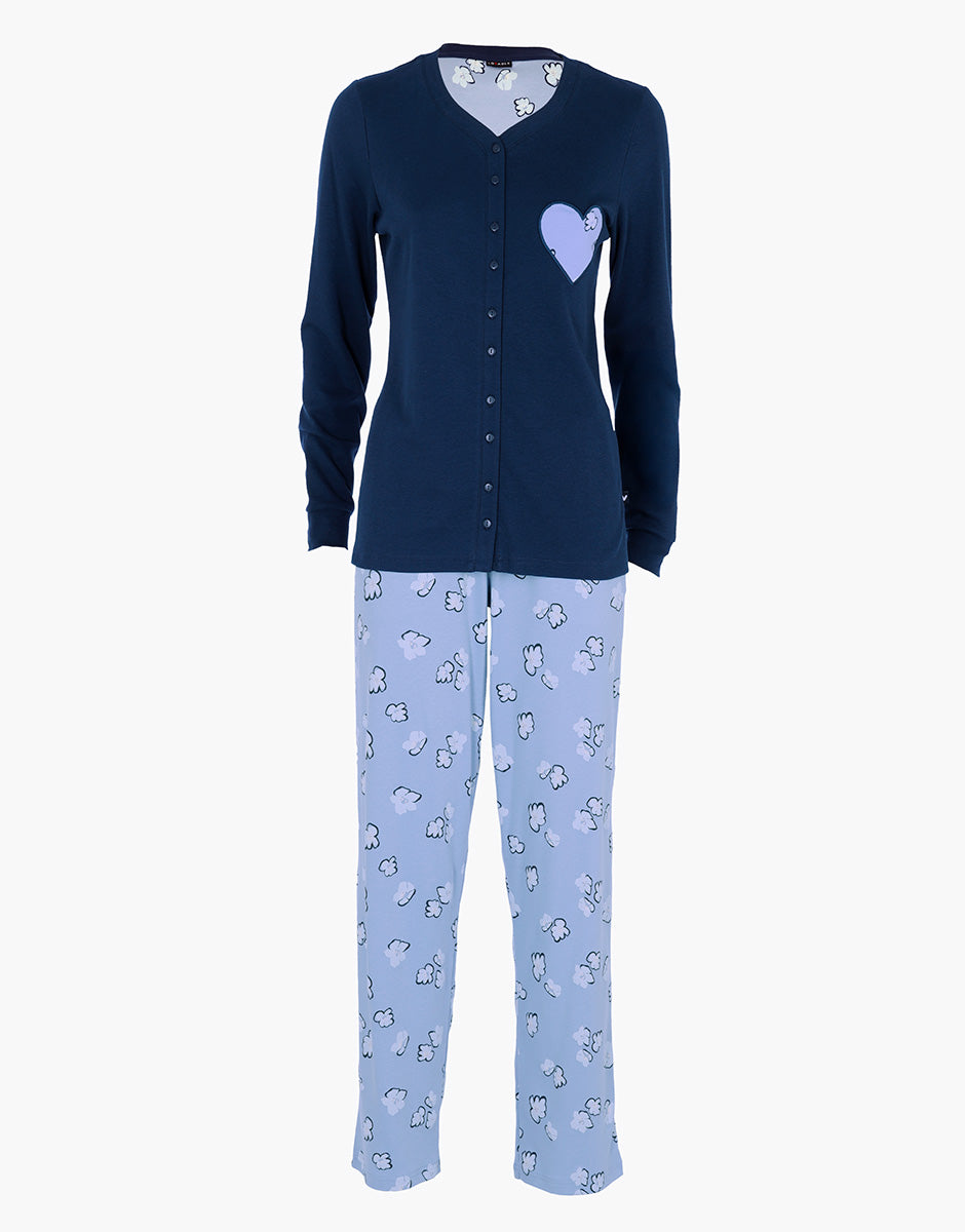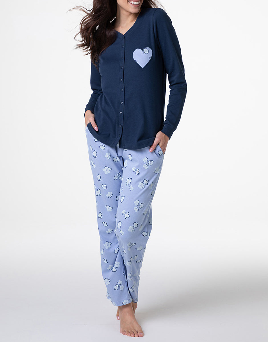 Long Open Interlock Pajamas, midnight blue
