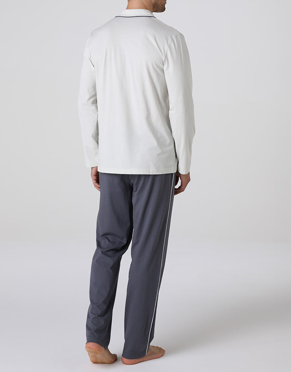 Long open pajamas in cotton jersey, light gray