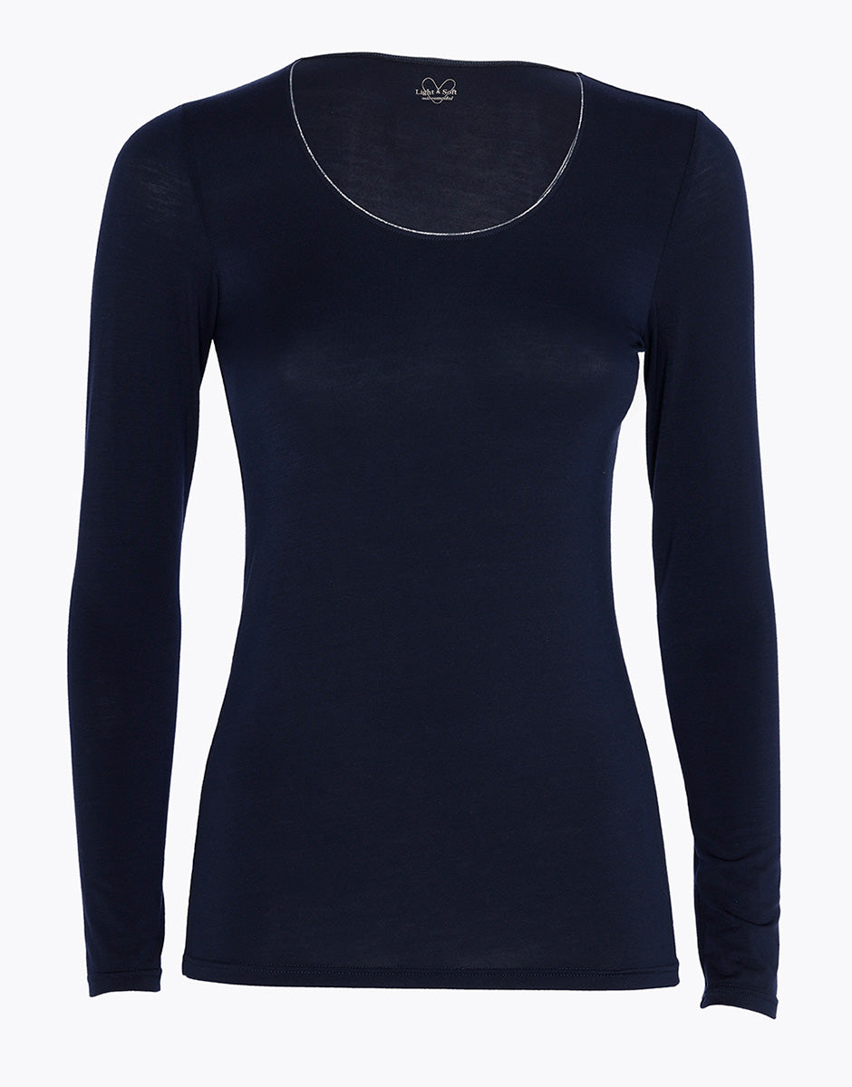 Long Sleeve Wide Neck Micromodal Sweater, midnight blue