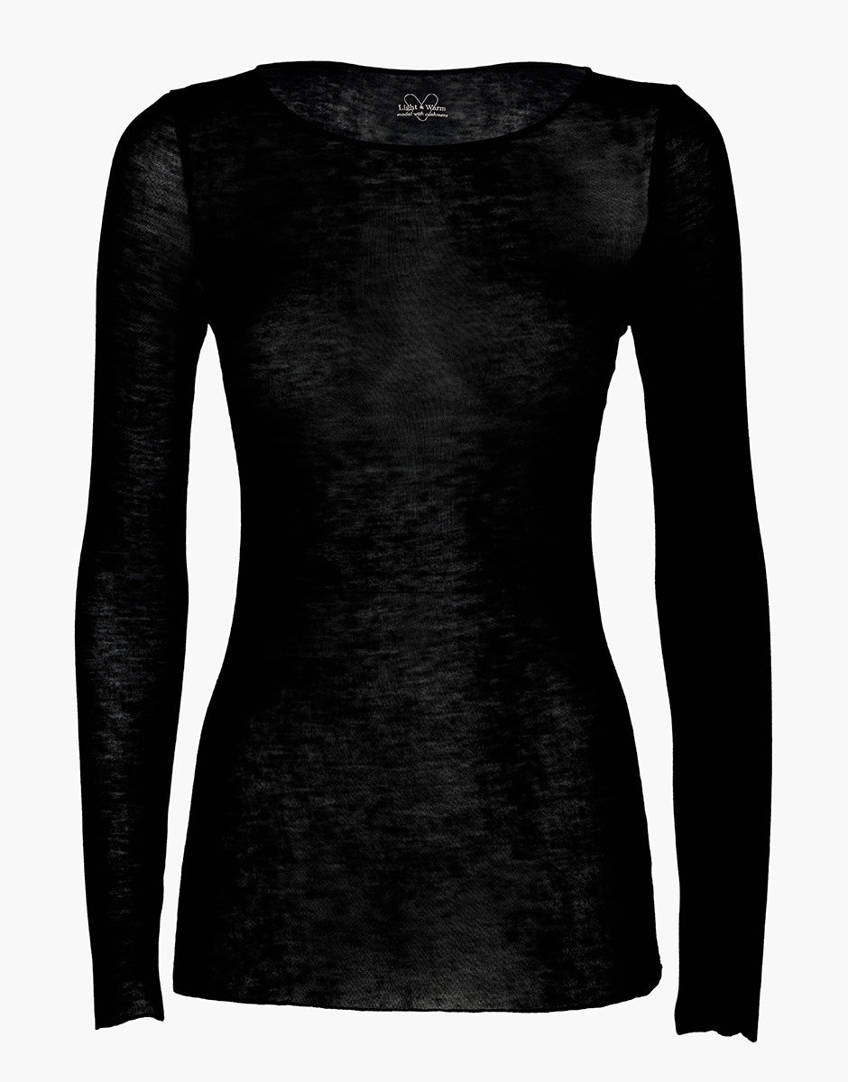Long-sleeved boat neck sweater in modal and cashmere, black