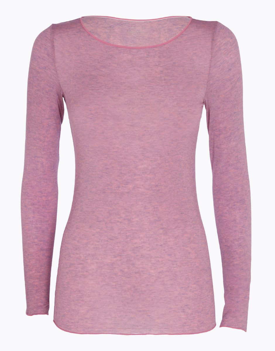 Long-sleeved boat neck sweater in modal and cashmere, orchid pink