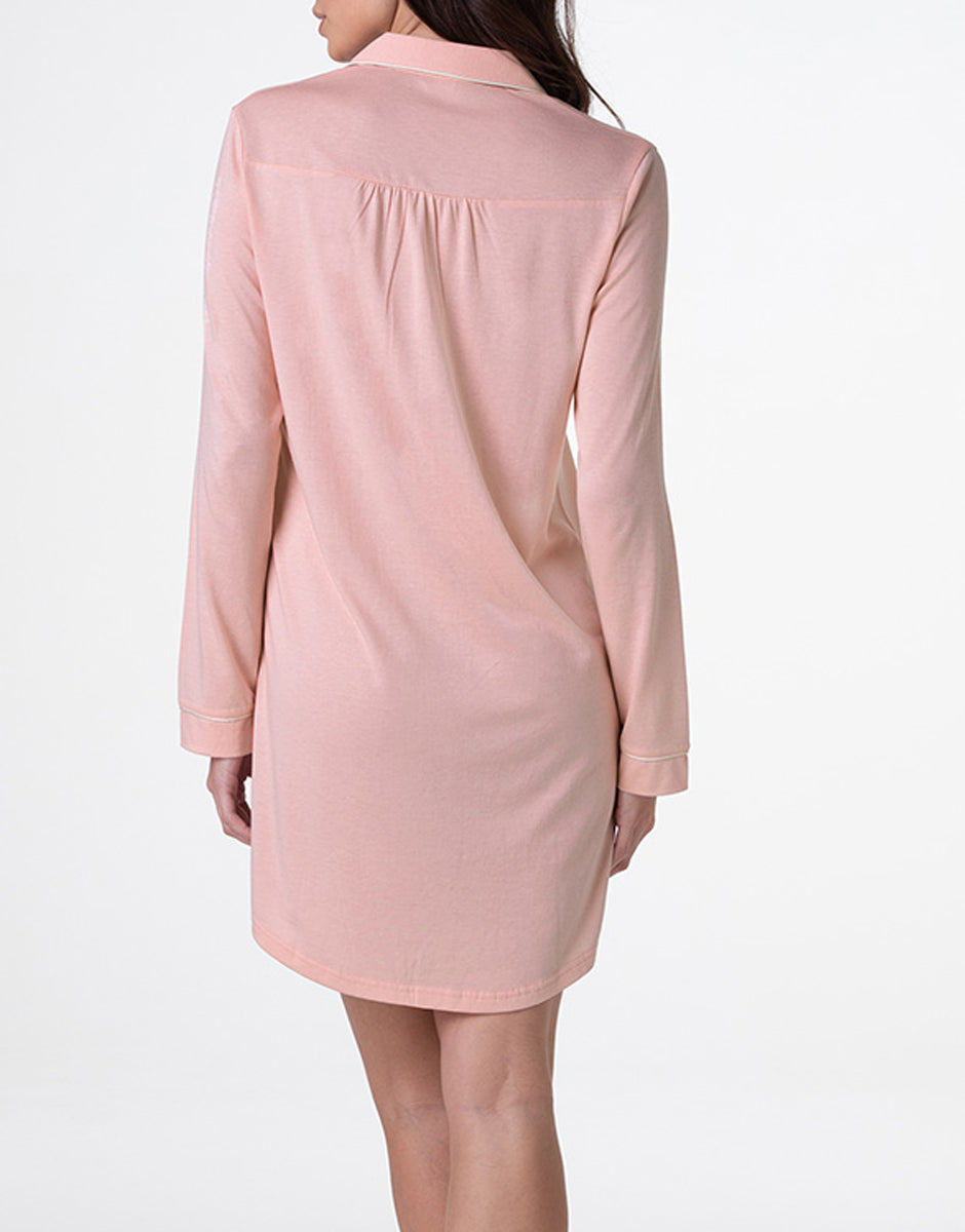 Long-sleeved open nightgown in Modal cotton, vintage pink