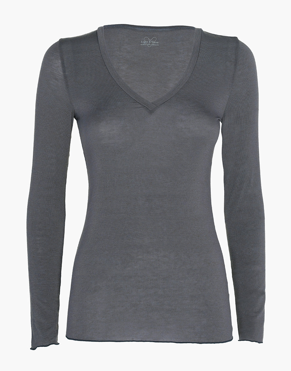 Wear anthracite gray and let yourself be pampered by the unique softness of our V-neck sweater.