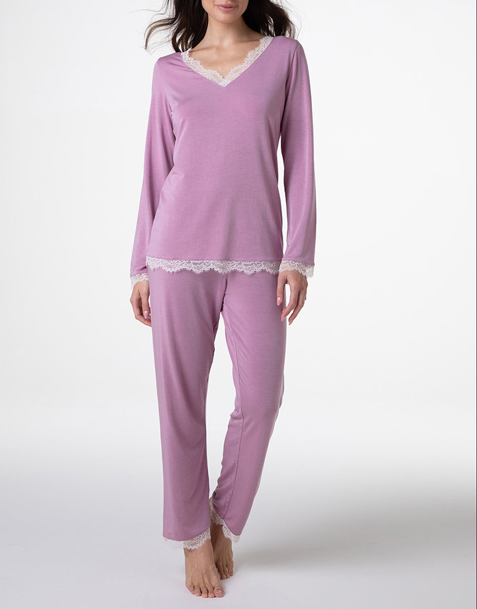 Long V-neck Modal Pajamas, Orchid Pink
