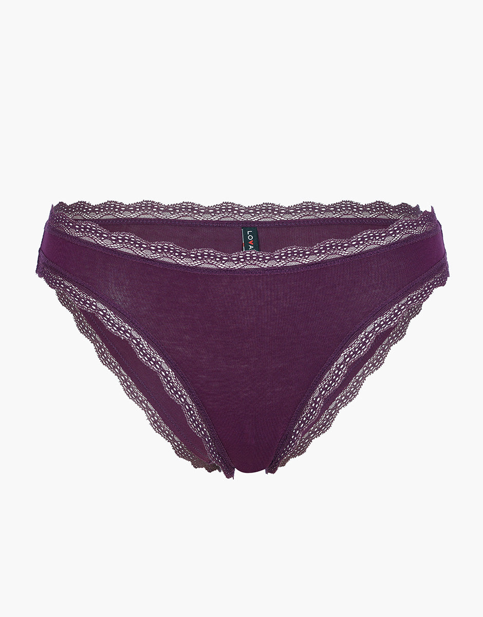 Lovable Panties briefs in stretch cotton and lace, burgundy