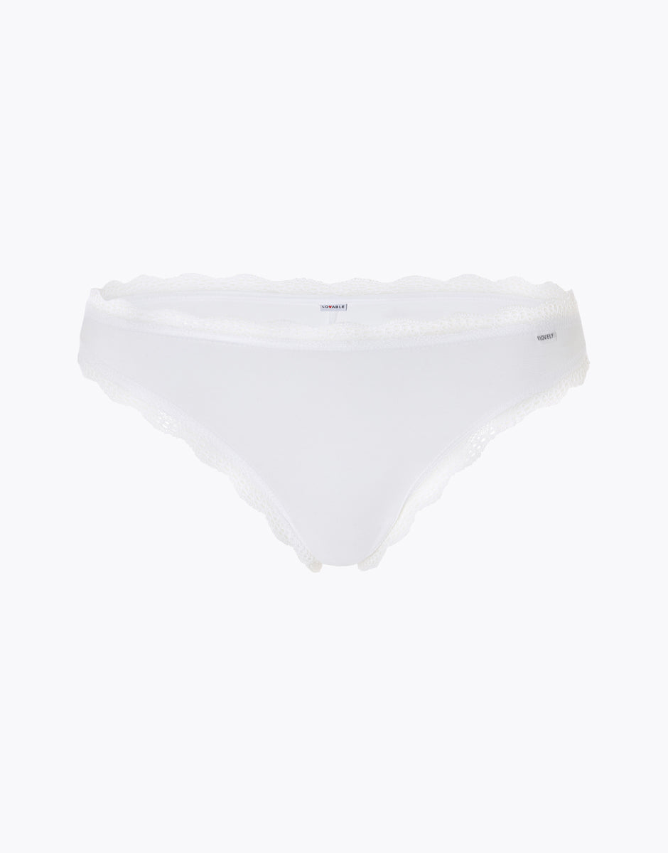 Lovely Brazilian briefs in stretch cotton and lace, white
