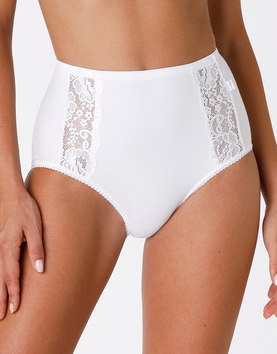 Lovely Charme maxi briefs, white stretch cotton with lace trim