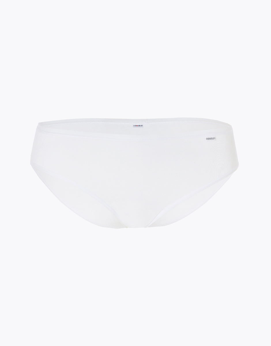 Essential modal cotton briefs in white. Featuring a lower rise at the waist and hips, these briefs are made from modal cotton, a fiber known for its softness and breathability, perfect for everyday wear that is comfortable and gentle on the skin. In addition, the inner gusset is made from 100% cotton, while the waistband and leg openings are ultra-flat, invisible under any outfit. Finally, the lovely label on the waistband characterizes these briefs, which are a perfect blend of simplicity and comfort.
