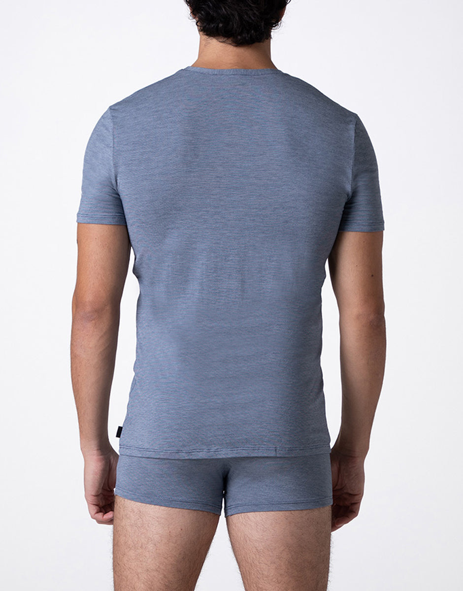 Micromodal Fil a Fil V-neck T-shirt, light blue jacquard