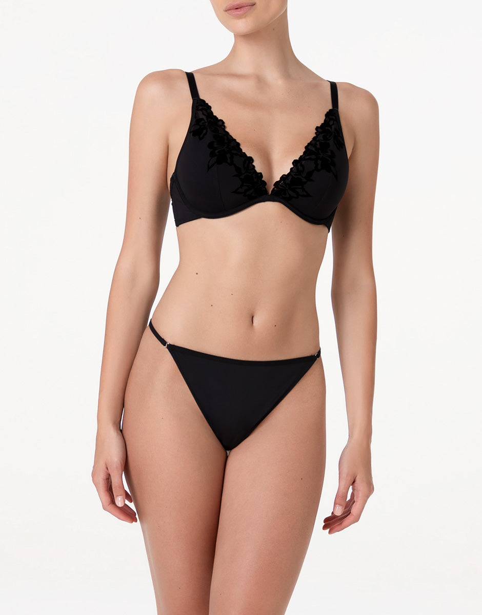 The black color enhances the velvet details and makes this bra ideal for elegant, feminine, and refined intimacy.