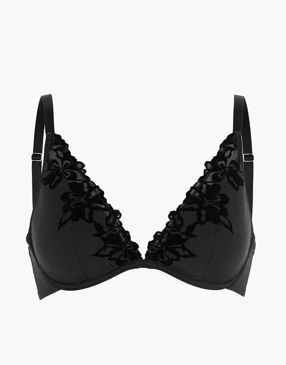 Padded Triangle Underwired Bra Velvet Embroidery in tulle and velvet, black