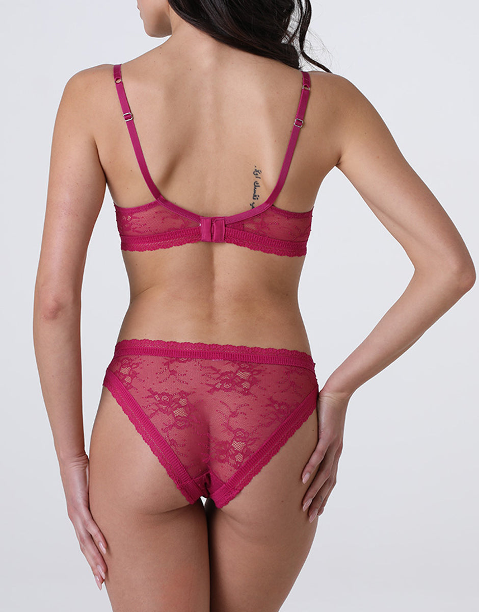The Romance Lace briefs in fuchsia combine comfort and style with a touch of vibrant color, designed to make you feel beautiful and comfortable every day.