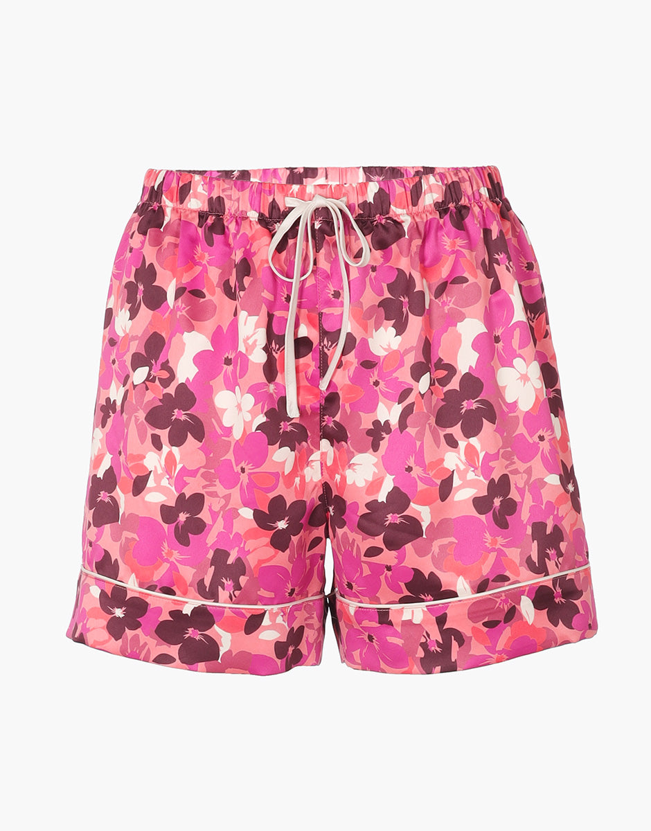 The model is 175 cm tall and wears size S. Satin shorts with floral print. Contrasting piping and drawstring details.Contrast piping and drawstring detail PLEASE NOTE: We recommend consulting the Size Guide on the product page to ensure you purchase the correct size for you.
