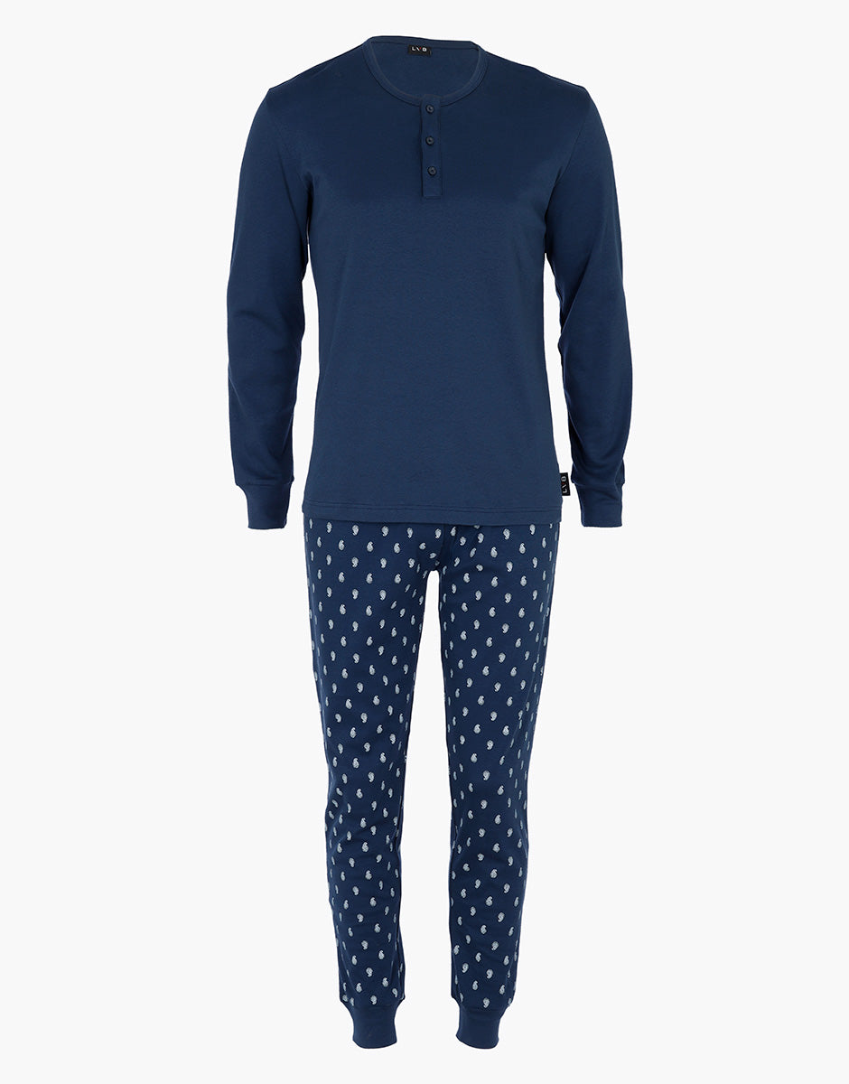 Serafino Interlock Long Sleeve Pajamas, Navy Blue