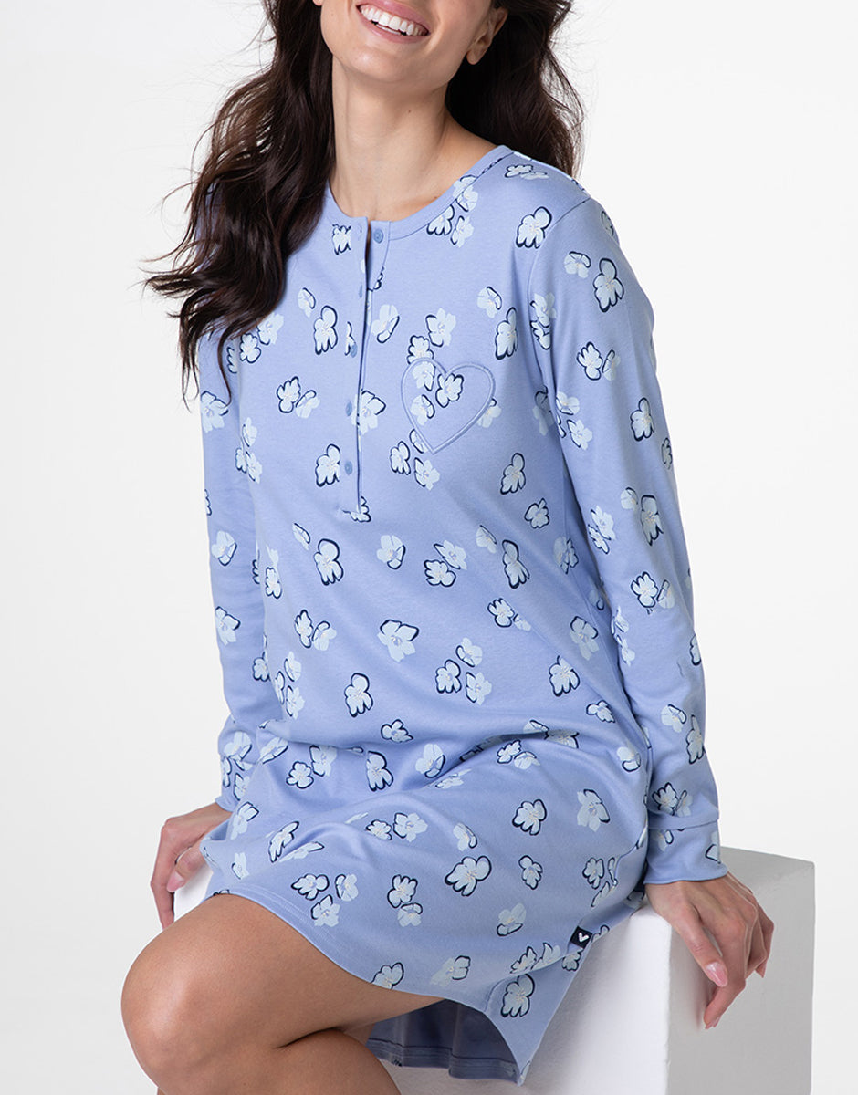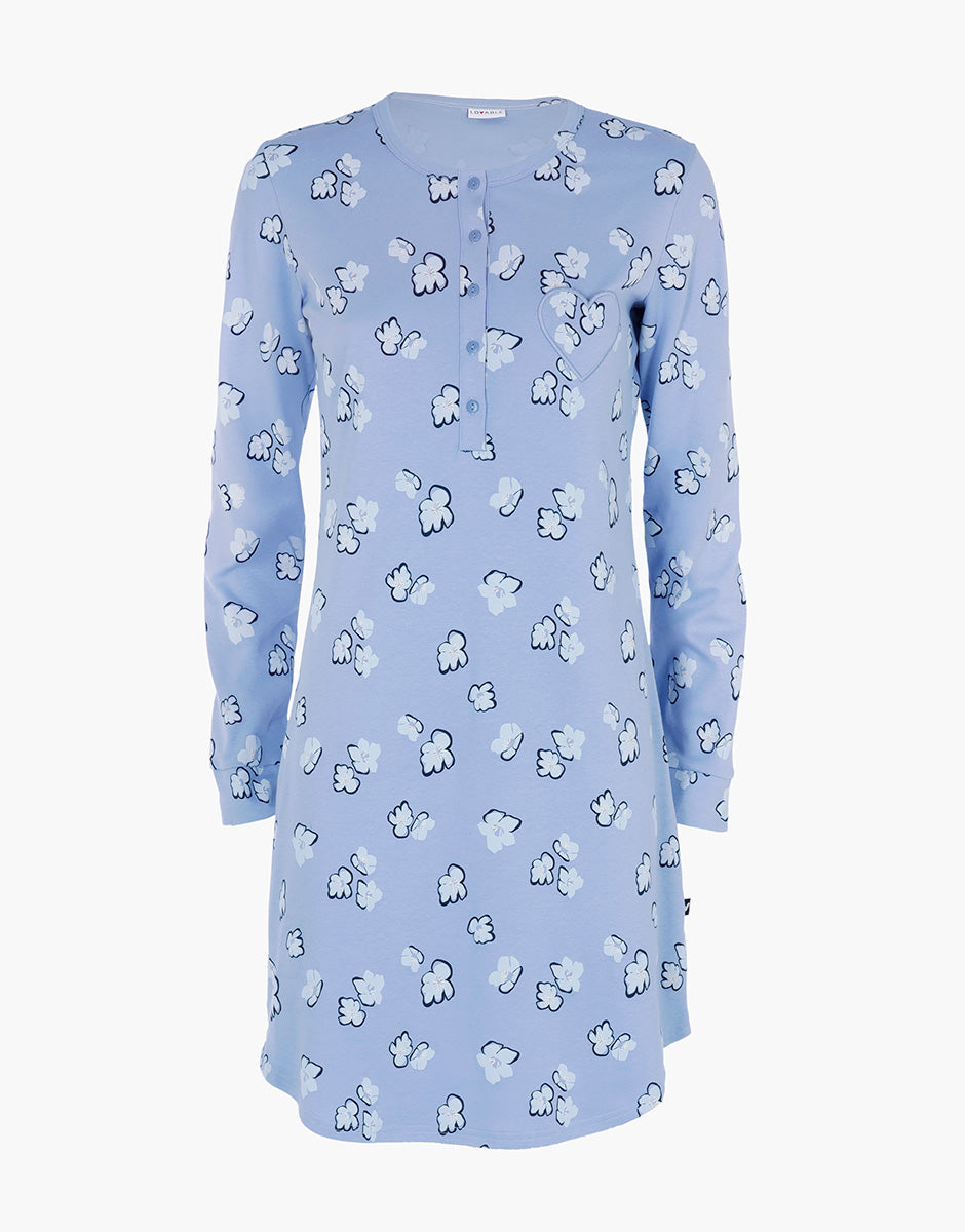 Serafino Long Sleeve Interlock Nightgown, powder blue print