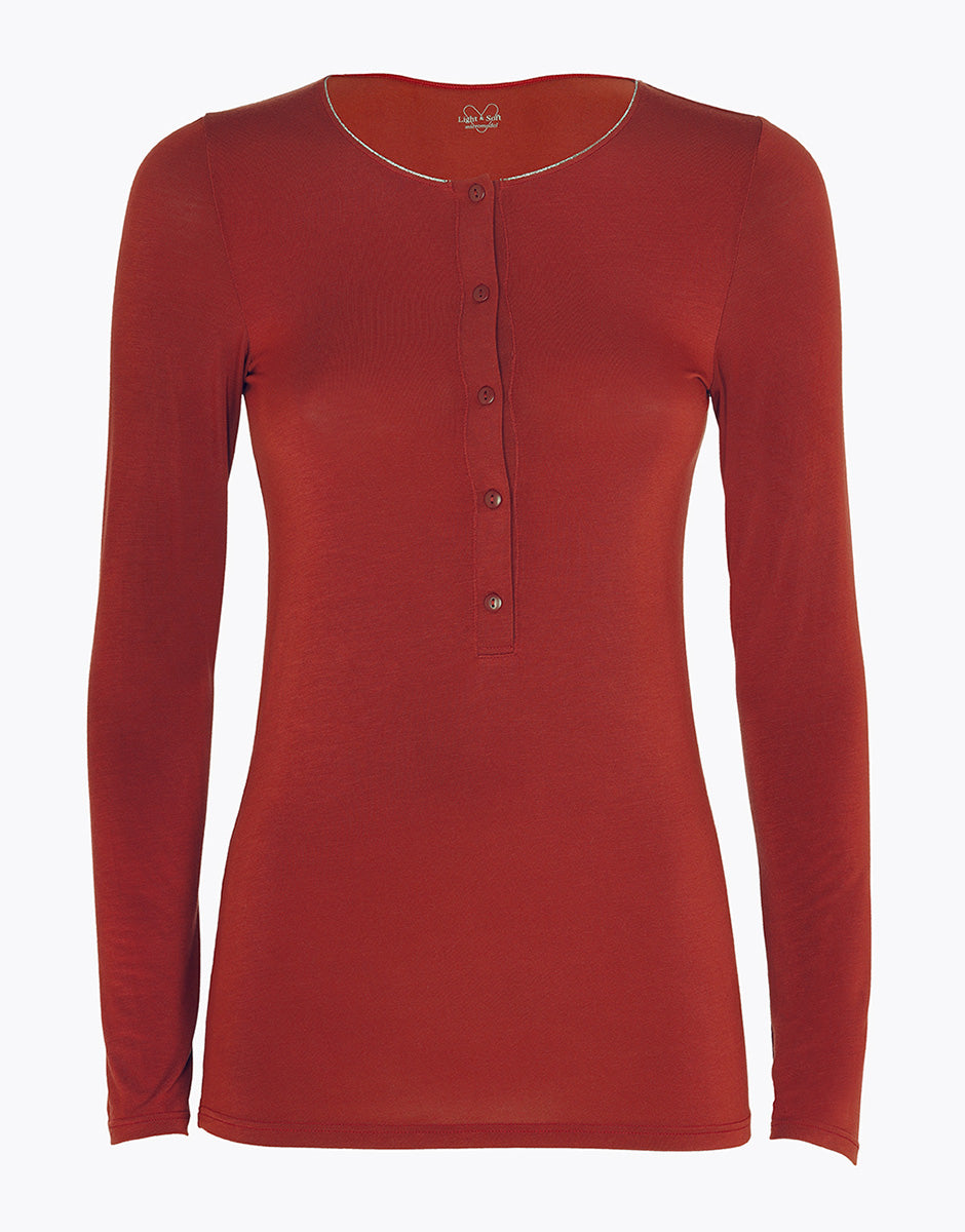 Serafino Long Sleeve Micromodal Sweater, Red Brown