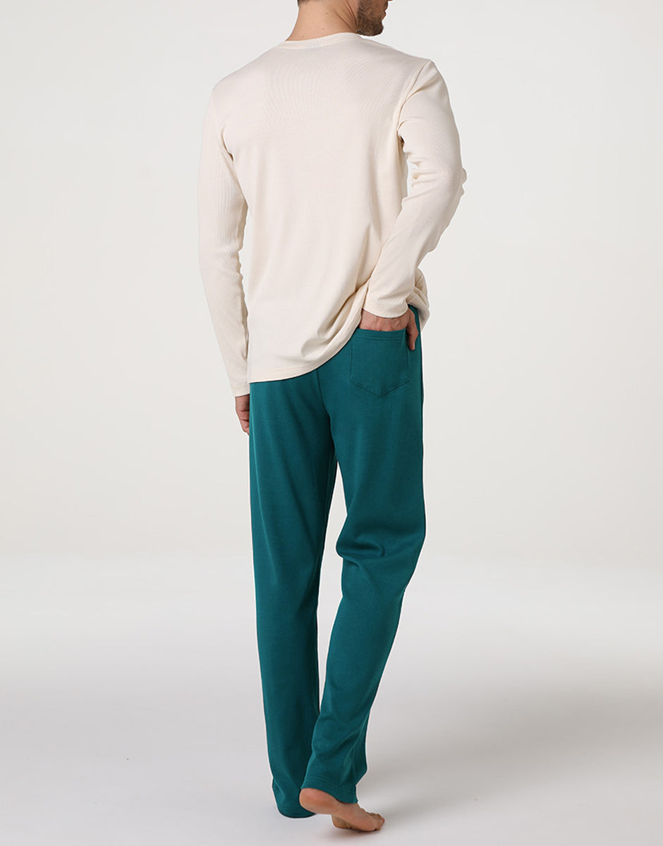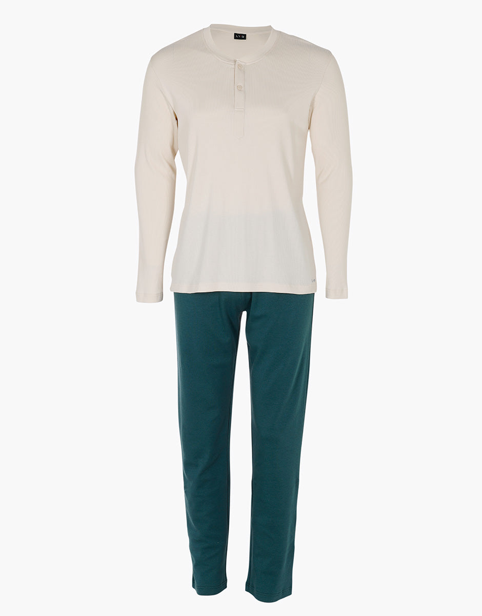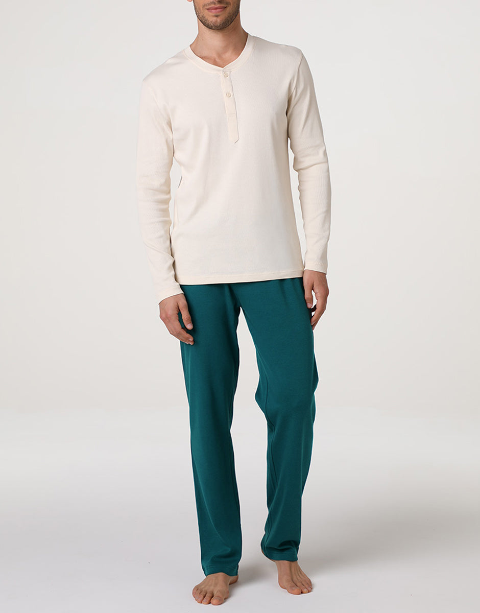 Serafino Long Sleeve Pajamas in Jersey Rib and Interlock, Ivory