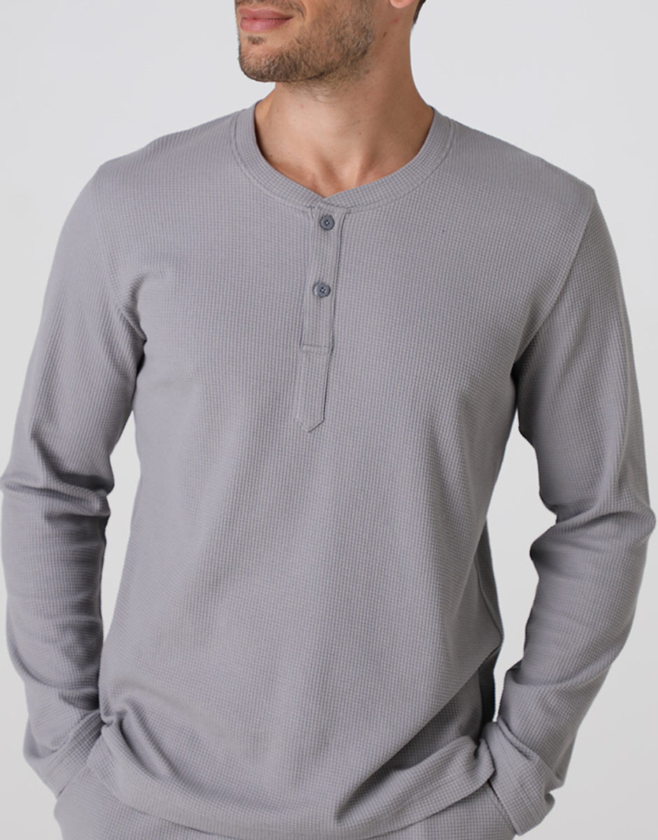 Serafino Long Waffle Pajamas, Gray