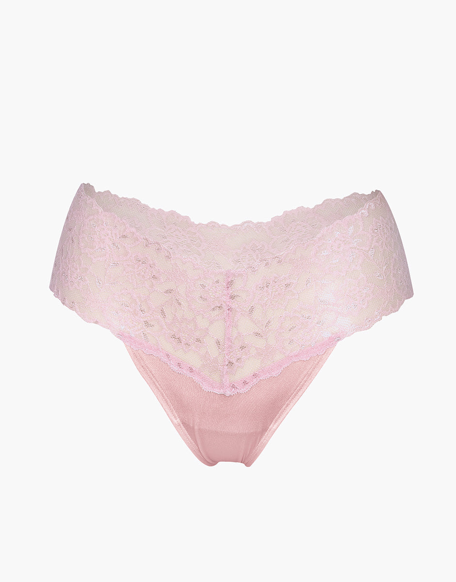 Table Panties Brazilian briefs in cotton and lace with high waistband, candy pink