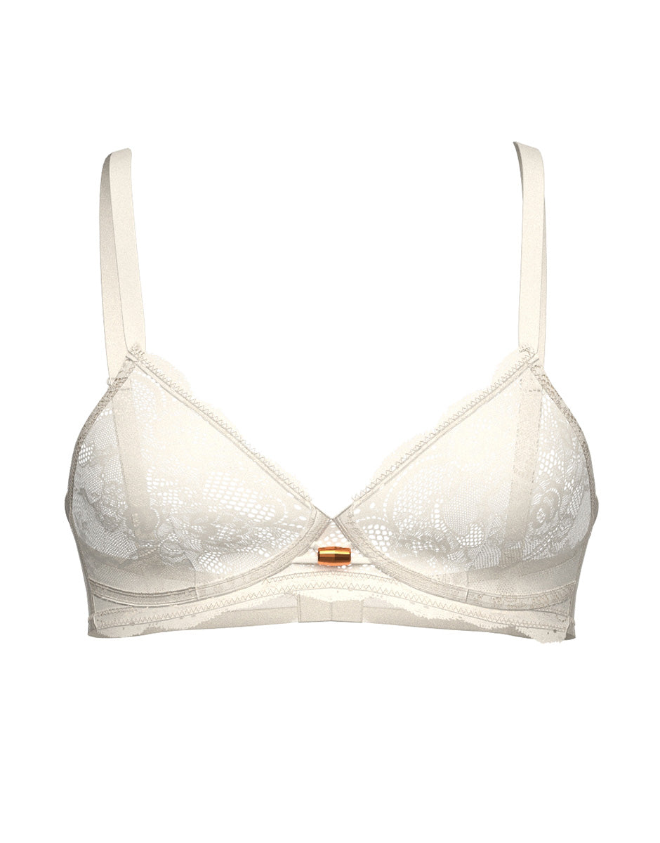 Trendy Lurex wireless bra in lace and tulle, milk white