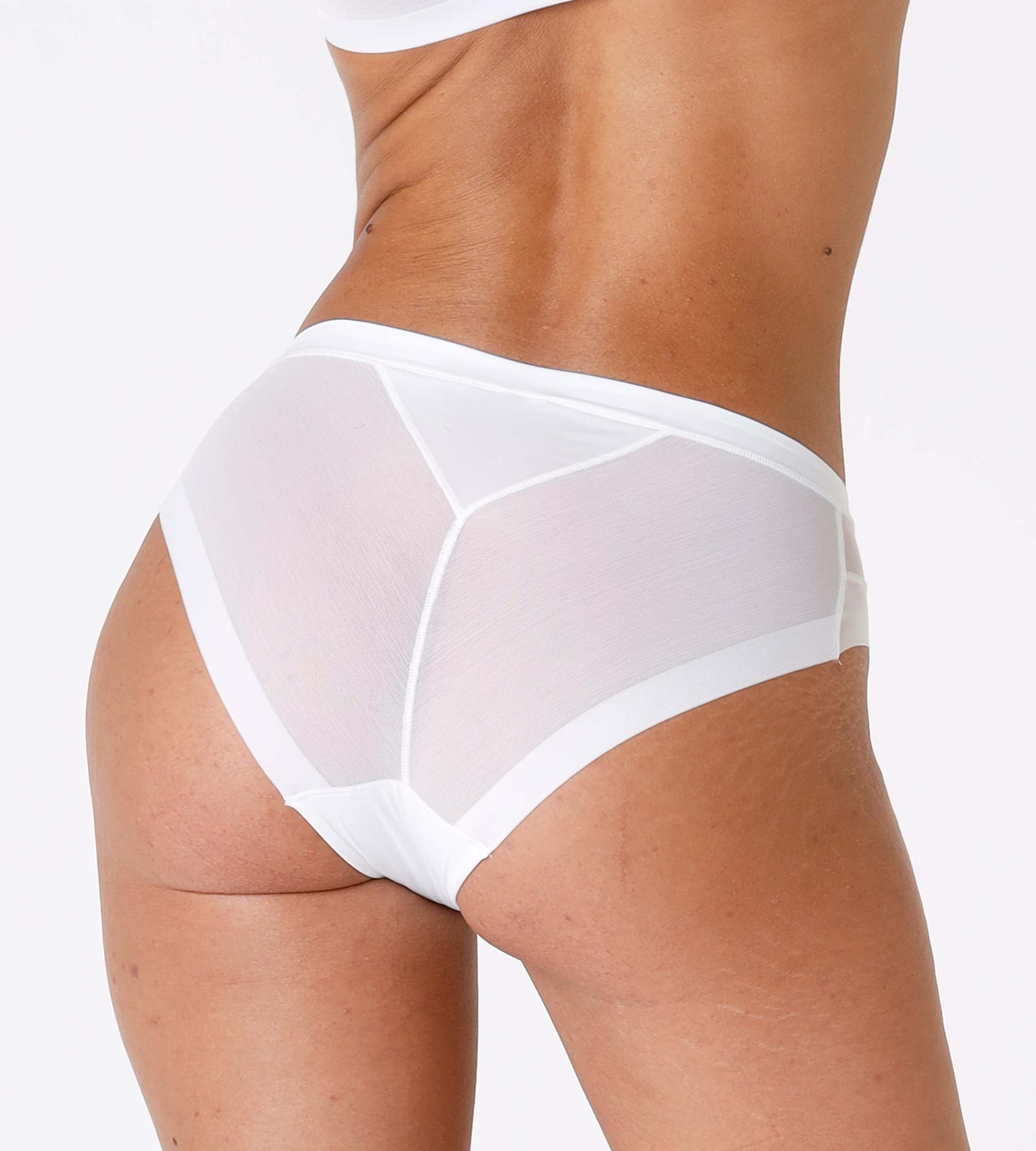 Ultralight white microfiber and tulle invisible briefs. Maximum invisibility