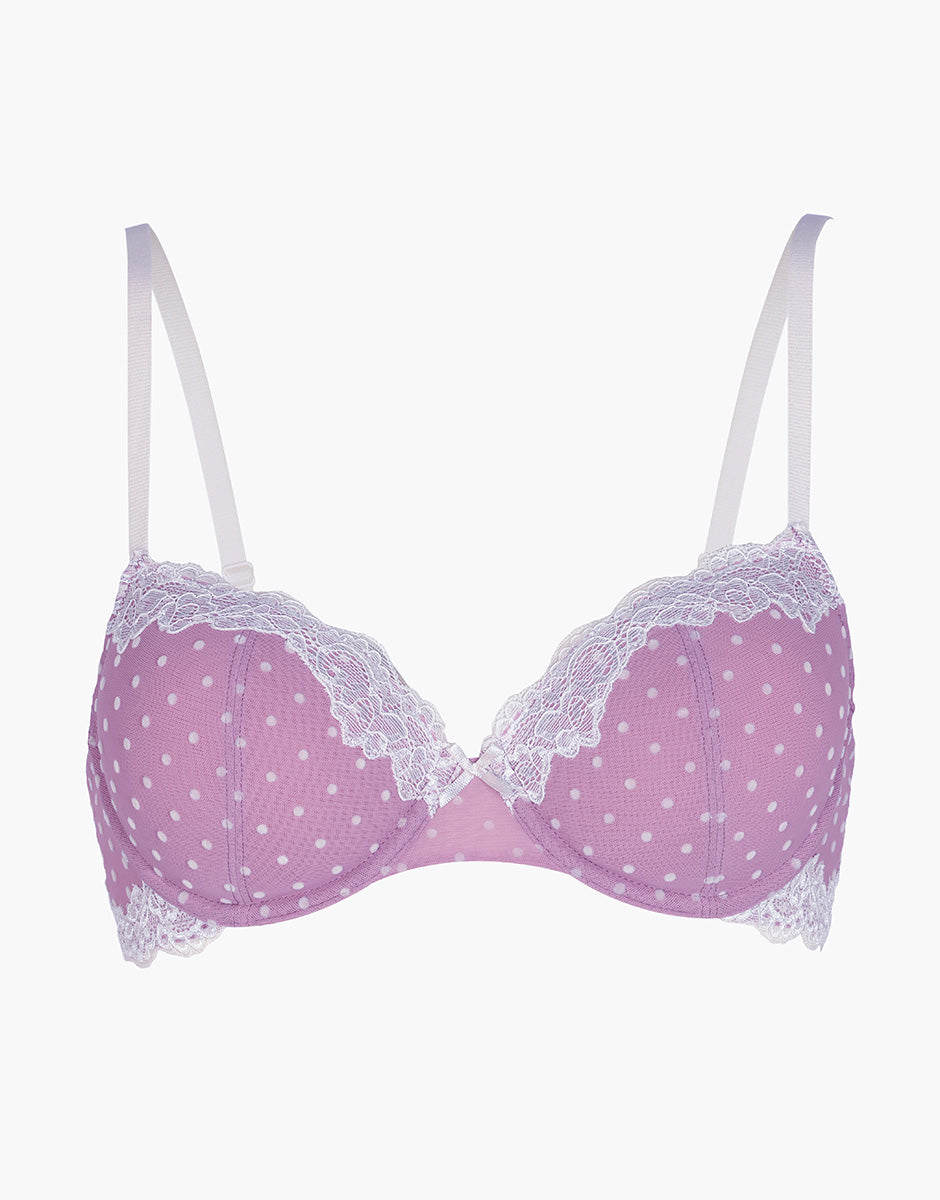 Underwired Bra Velvet Tulle in lace and tulle, pink with ivory polka dots