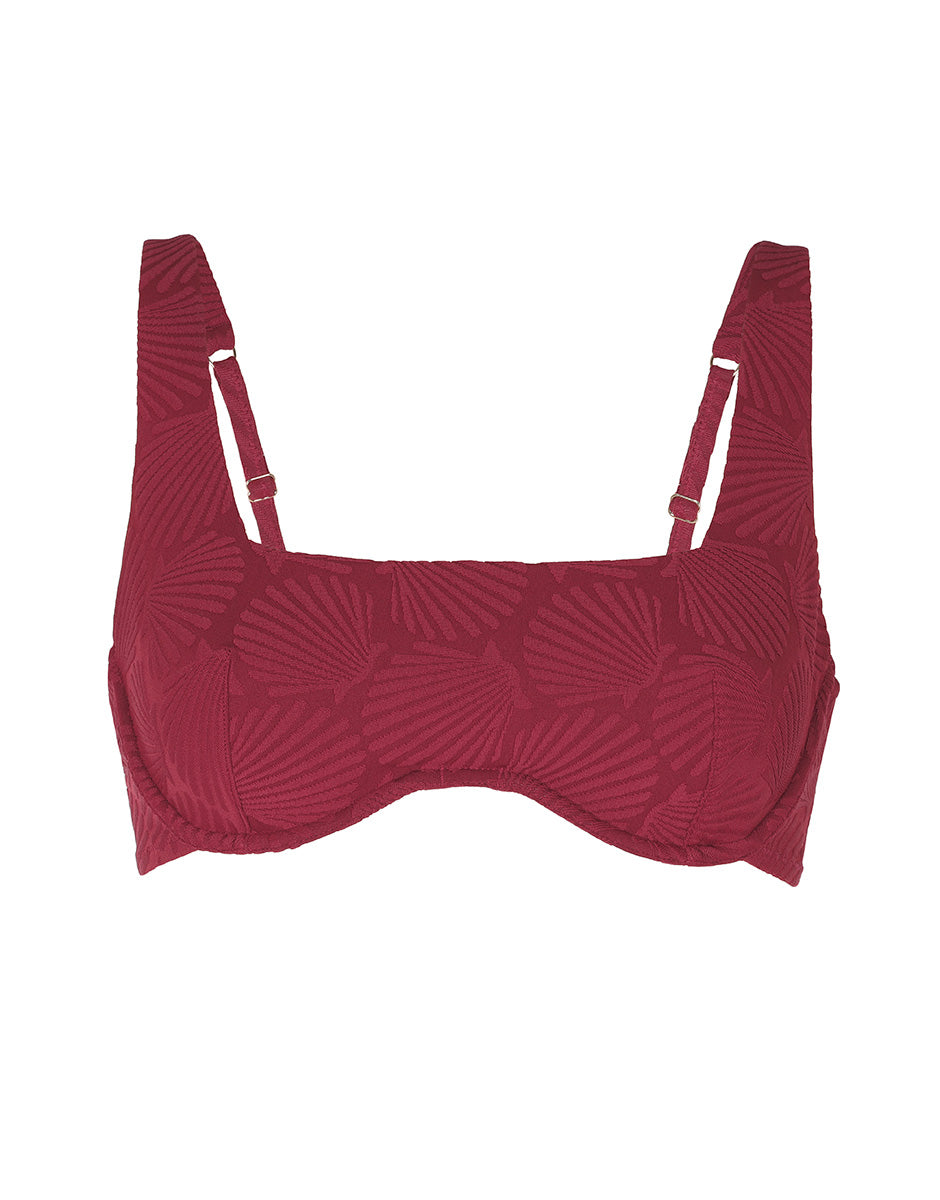 Underwired Brassiere Bikini Top Embellished Jacquard, tibetan red
