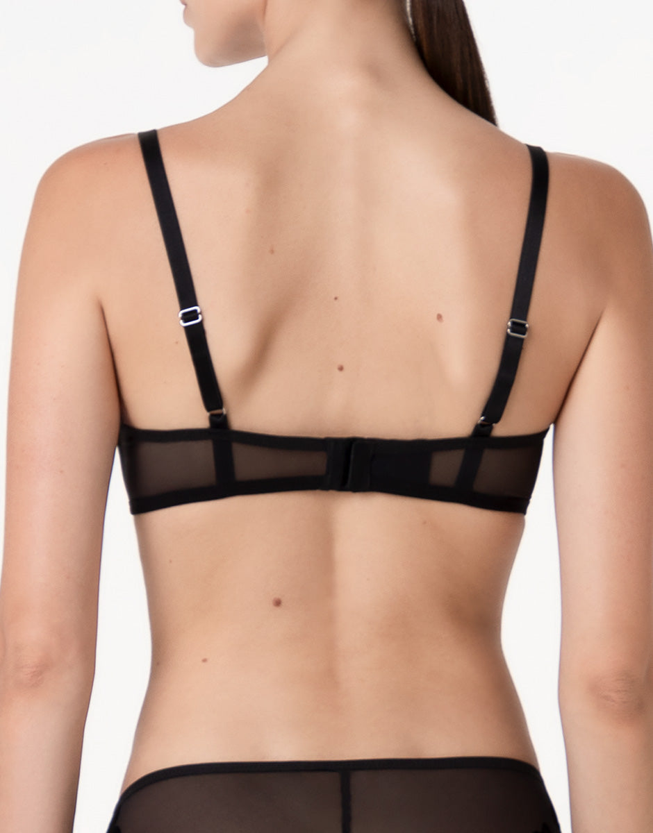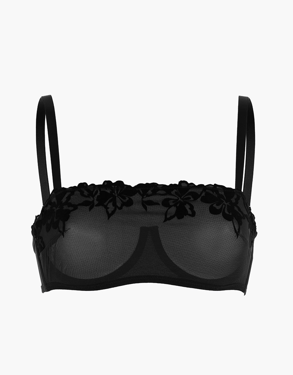 Velvet Embroidery Underwired Bandeau Bra in tulle and velvet, black